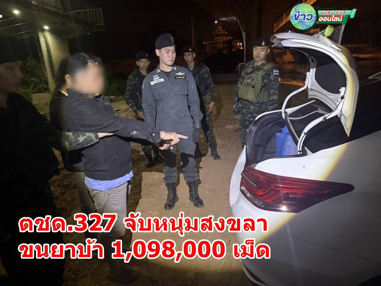 ตชด.327 จับหนุ่มสงขลา ขนยาบ้า 1,098,000 เม็ด