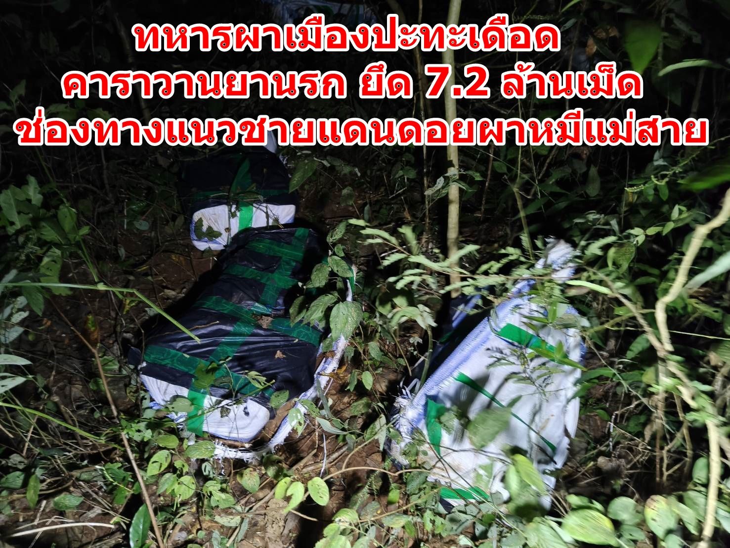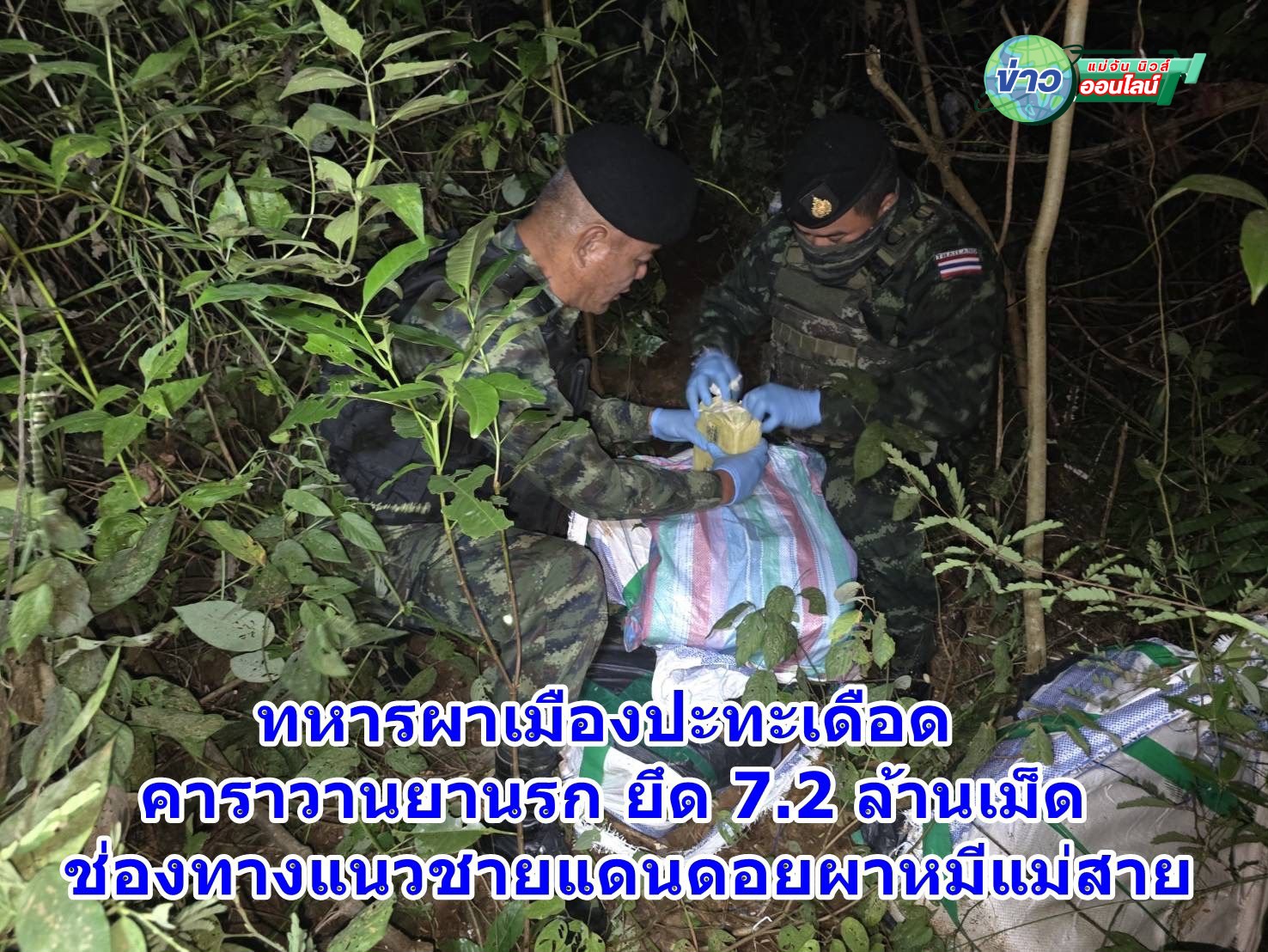 เชียงราย – ทหารผาเมืองปะทะเดือดคาราวานยานรก ยึด 7.2 ล้านเม็ด ช่องทางแนวชายแดนดอยผาหมีแม่สาย