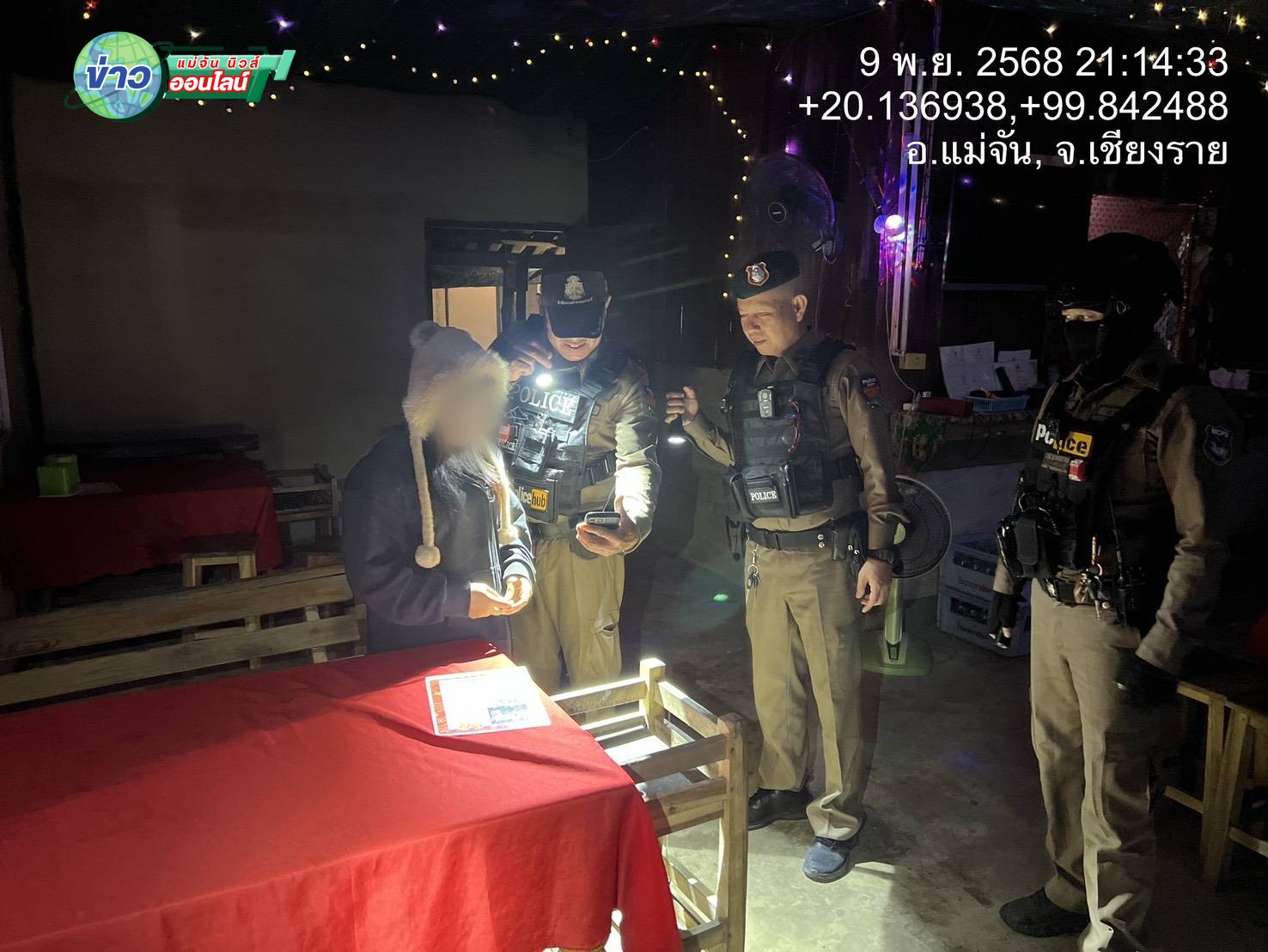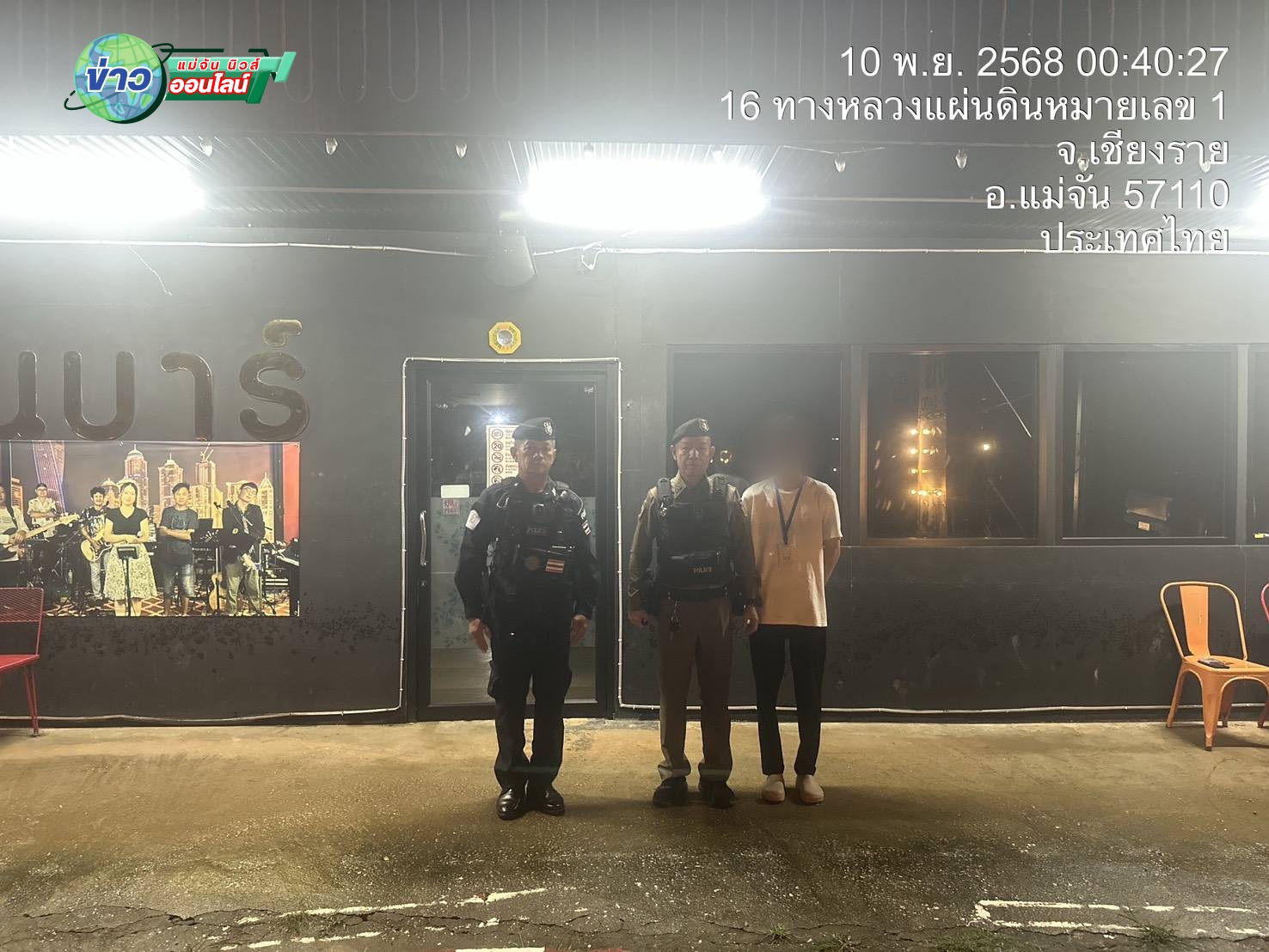 โดยมีเจ้าหน้าที่ตำรวจหลายชุดปฏิบัติการ ได้แก่ ร.ต.อ.จิตรภาณุ ชุ่มมงคล รอง สวป.สภ.แม่จัน (ร้อยเวรฯ20) พร้อม ชป.3 ออกตรวจร้านน้ำหวาน และร้านบ้านเพลง