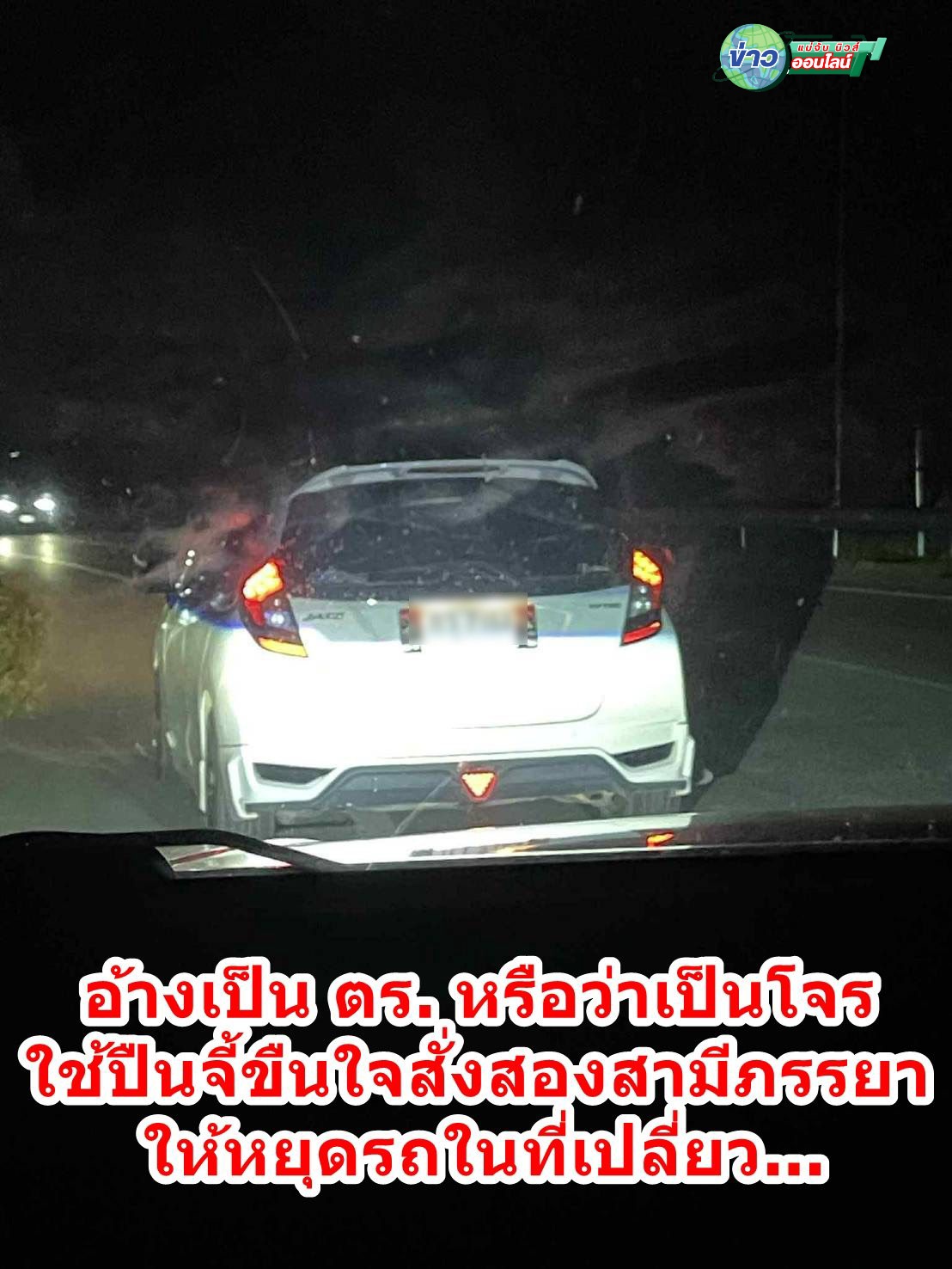 อ้างเป็น ตร. หรือว่าเป็นโจร ใช้ปืนจี้ขืนใจสั่งสองสามีภรรยาให้หยุดรถในที่เปลี่ยว