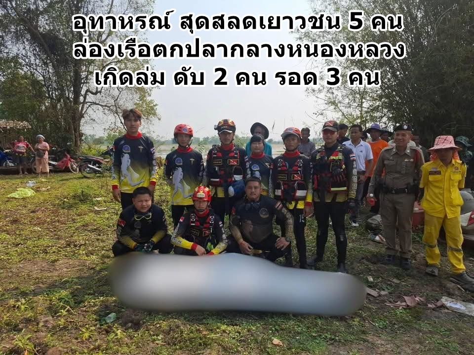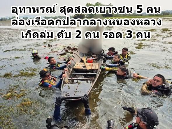 เกิดเหตุสลดกลางหนองน้ำสาธารณะ “หนองหลวง” เยาวชนวัย 15 ปี พากันพายเรือออกไปตกปลา ก่อนเรือเสียหลักพลิกคว่ำจมหาย 2 ราย กู้ภัยระดมนักประดาน้ำค้นหากว่า 3 ชั่วโมงจนพบร่างไร้วิญญาณ