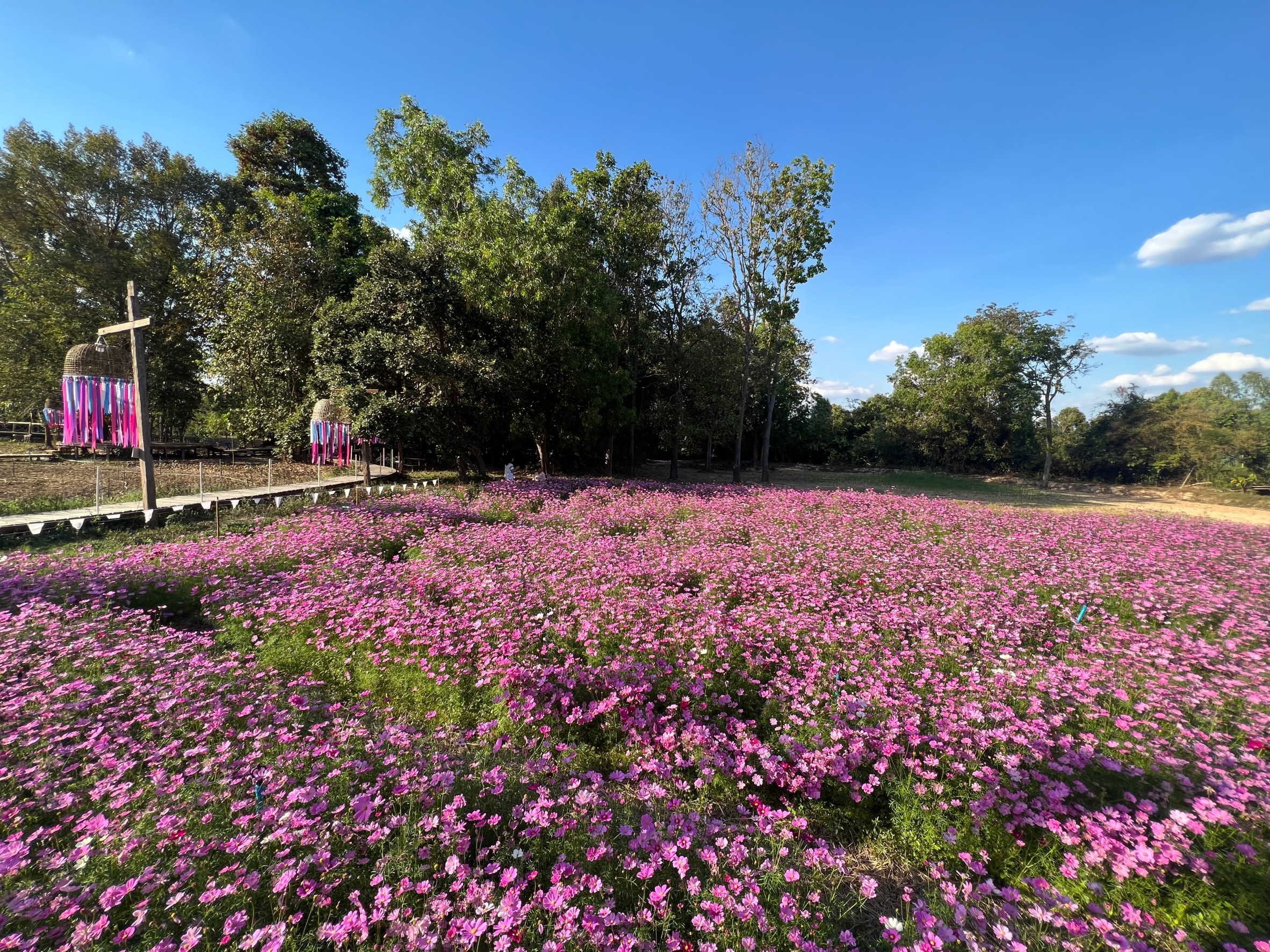 ศรีสะเกษ พระศรีญาณวิเทศเชิญชมดอกคอสมอสกว่า 2 ล้านต้นที่วัดป่าพิมลมังคลาราม พระสงฆ์ทำสะพานไม้ทอดยาวผ่านทุ่งคอสมอสเพื่อให้นักท่องเที่ยวได้ชมและสัมผัสความสวยงามตระการตาของดอกคอสมอส เป็นการทำให้ประชาชนอยากเข้ามาวัดเข้ามาปฏิบัติธรรม ศึกษาธรรมะ มาเรียนรู้เรื่องราวต่าง ๆ