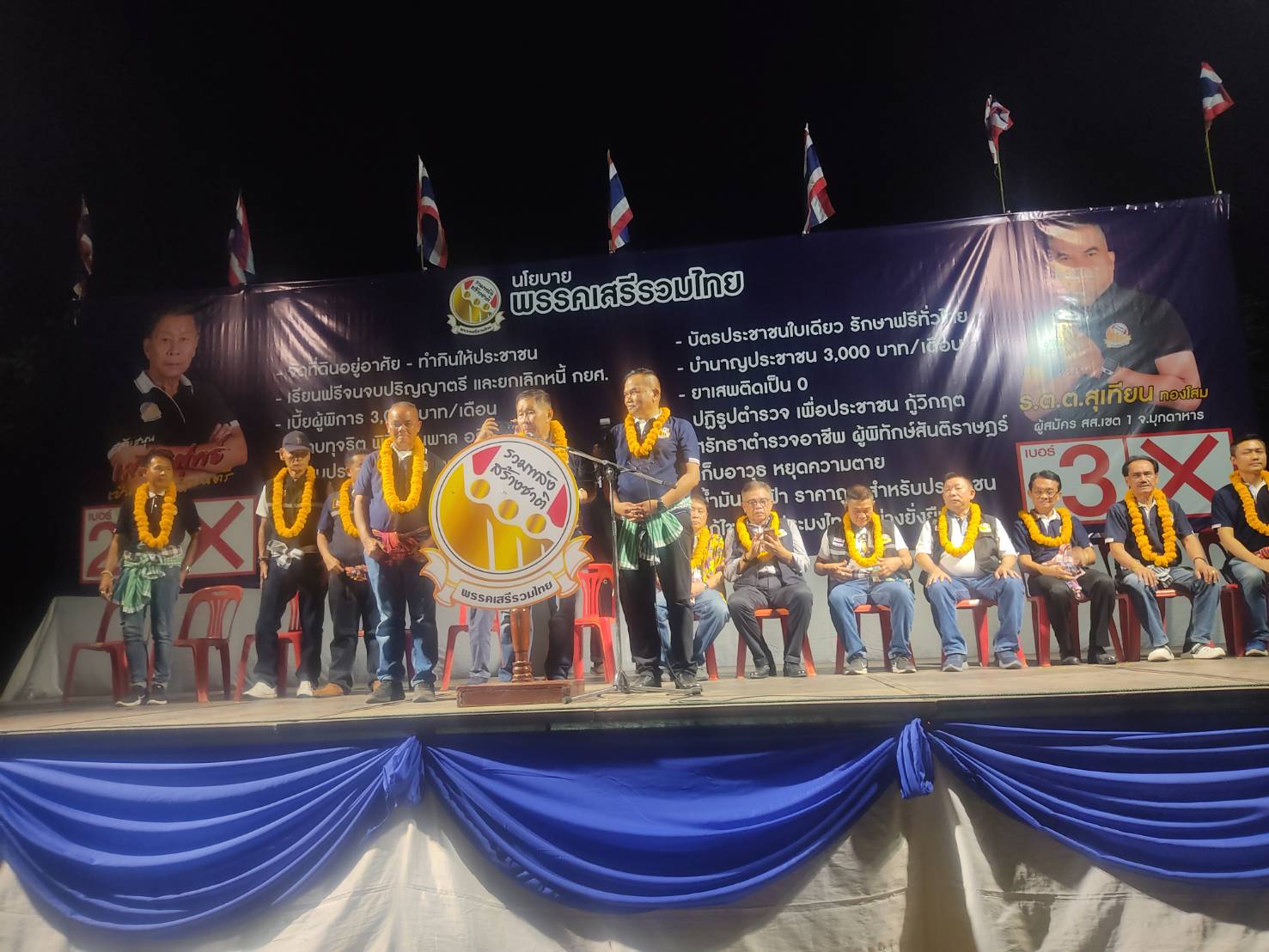 พล.ต.อ.เสรีพิศุทธ์ เตมียเวส หัวหน้าพรรคเสรีรวมไทย ขึ้นปราศรัยชูนโยบายพรรคที่มีหลายข้อ บอกประชาชนสามารถทำได้ โดยไม่ใช้เงินกู้ ใช้วิธีการ ประหยัด และ ปราบทุจริต หากปราบได้จะทำให้เงินเหลือ และเอาเงินนั้น เอามาพัฒนาประเทศ ตามนโยบายของพรรค ให้พ่อแม่พี่น้องไว้ใจได้ ว่าเลือก พล.ต.อ.เสรีพิศุทธ์ เตมียเวส หัวหน้าพรรคเสรีรวมไทย เป็นนายก จะทำตามนโยบายให้สำเร็จโดยเร็วที่สุด