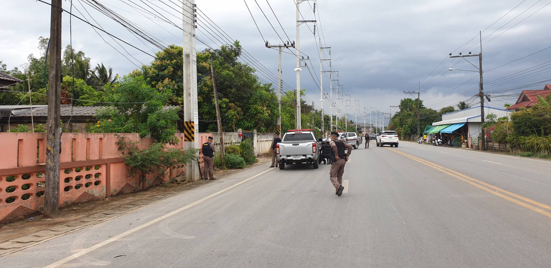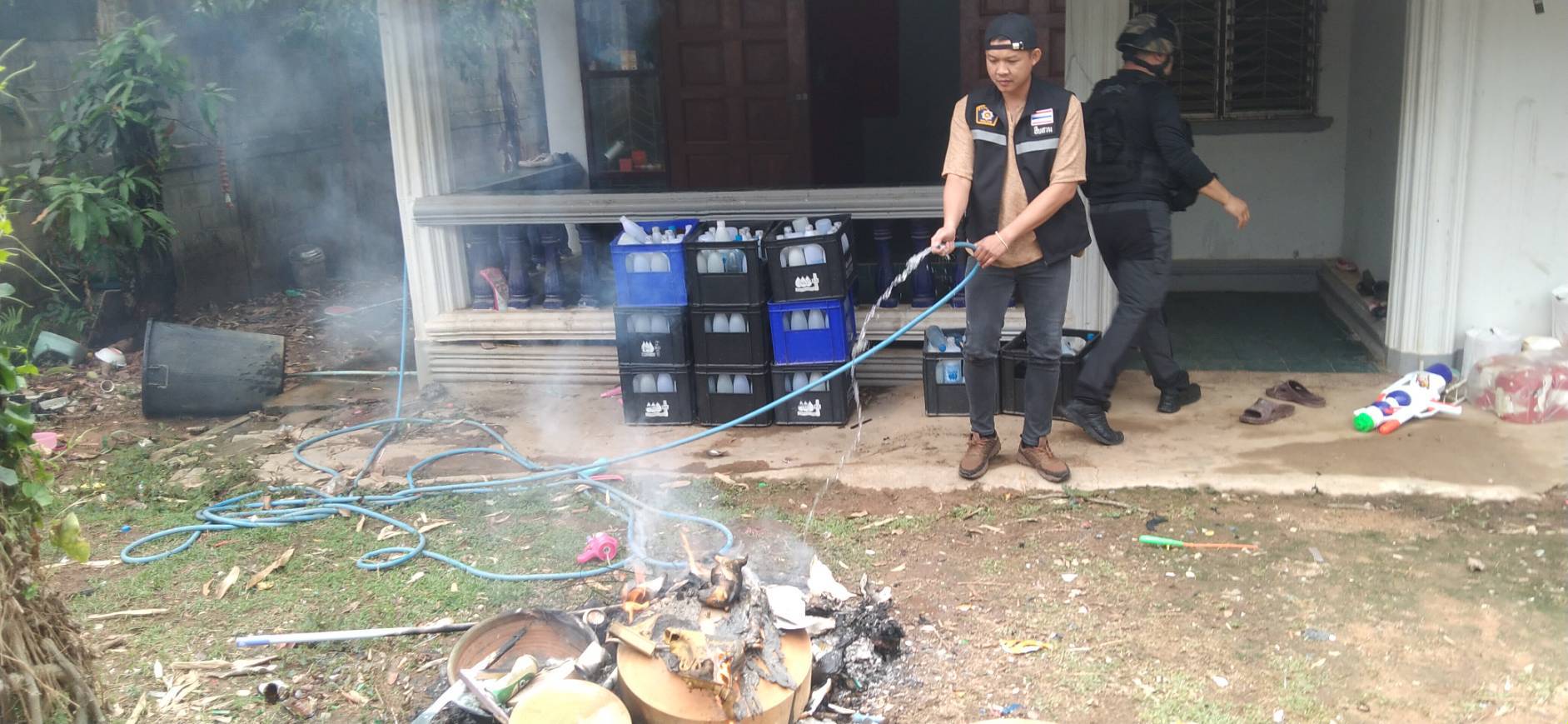 วันนี้ 1 พฤษภาคม พ.ศ. ๒๕๖๖ เวลา 10.00 น. พ.ต.อ.ปวีณ ทองสมบูรณ์ ผกก.สภ.เกาะช้าง ได้รับแจ้งจากชาวบ้าน บ.สันถนนใต้ ม.2 ต.ศรีเมืองชุม อ.แม่สาย จ.เชียงราย ว่ามีชายฉกรรจ์คลุ้มคลั่งอาการเหมือนคนเสพสารเสพติด บริเวณบ้านเช่า เลขที่ 211 ม.2 ต.ศรีเมืองชุม จึงได้สั่งการให้ พ.ต.ท.เจริญชัย จารุแพทย์ รอง ผกก.ป.สภ.เกาะช้าง พ.ต.ต.กฤตกรณ์ กันจินะ สว.สส.สภ.เกาะช้าง พร้อมเจ้าหน้าที่ชุดสายตรวจ 191 รุดไปตรวจสอบตามที่ได้รับแจ้ง เมื่อไปถึงบริเวณบ้านเช่าหลังดังกล่าว พบนางปัทมา แก้วน้อย อายุ 36 ปี ยืนอยู่หน้าบ้านหลังดังกล่าวเพื่อขอความช่วยเหลือจากทางเจ้าหน้าที่ และภายในบ้านได้มีการจุดไฟเผาสิ่งของต่างๆ และมีขวดเบียร์เปล่าแตกกระจายบริเวณลานบ้าน ซึ่งนางปัทมาฯ ได้บอกกับทางเจ้าหน้าที่ว่า นายสำรวย แก้วน้อย อายุ 42 ปี อยู่บ้านเลขที่ 19/7 ม.4 ต.หนองไผ่ อ.ด่านมะขามเตี้ย จ.กาญจนบุรี