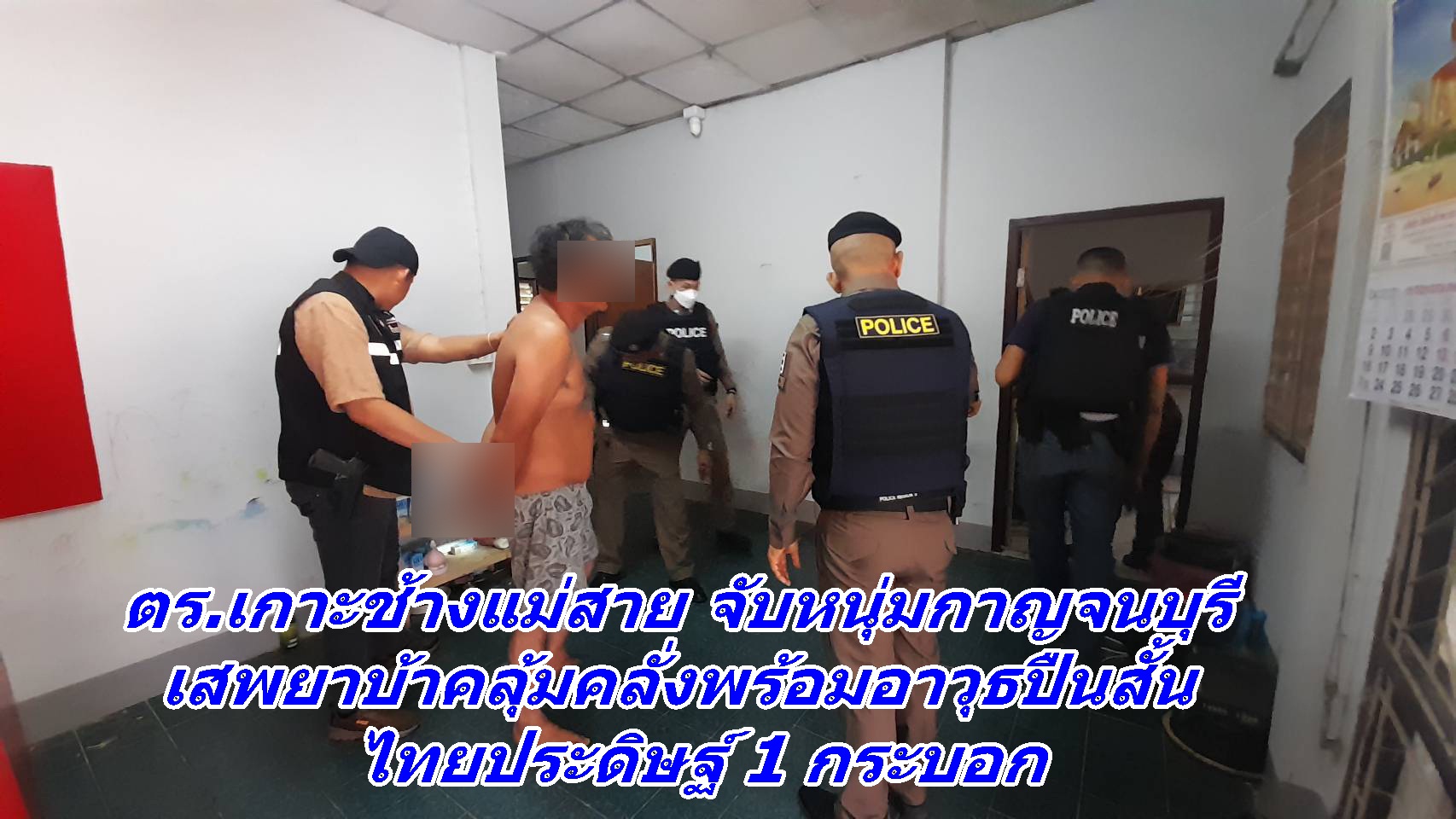 ตร.เกาะช้างแม่สาย จับหนุ่มกาญจนบุรี เสพยาบ้าคลุ้มคลั่ง อาวุธปืนสั้นไทยประดิษฐ์ 1 กระบอก