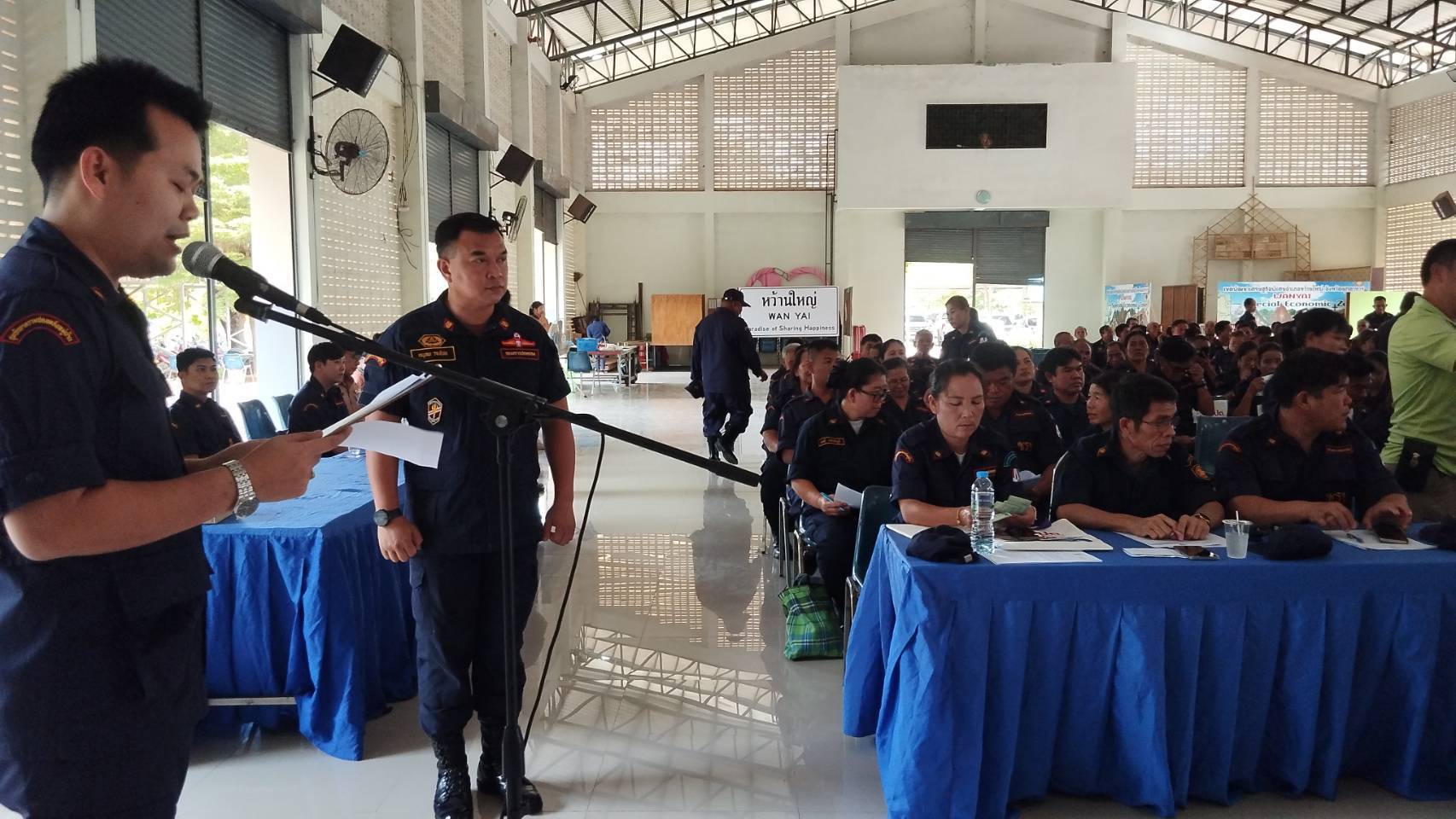 มุกดาหาร/เมื่อวันที่ 5 พฤศจิกายน 2567 ที่หอประชุมอำเภอหว้านใหญ่ จังหวัดมุกดาหาร ว่าที่ร้อยตรี เอกวัฒนา คงคาน้อย นายอำเภอหว้านใหญ่ พร้อมด้วยหัวหน้าส่วนราชการ ฝ่ายปกครอง ได้ร่วมกันประชุมประจำเดือน โดยมีกำนัน ผู้ใหญ่ และชุดรักษาความปลอดภัยหมู่บ้าน ( ชรบ. ) เข้าร่วมในครั้งนี้จำนวน 100 คน