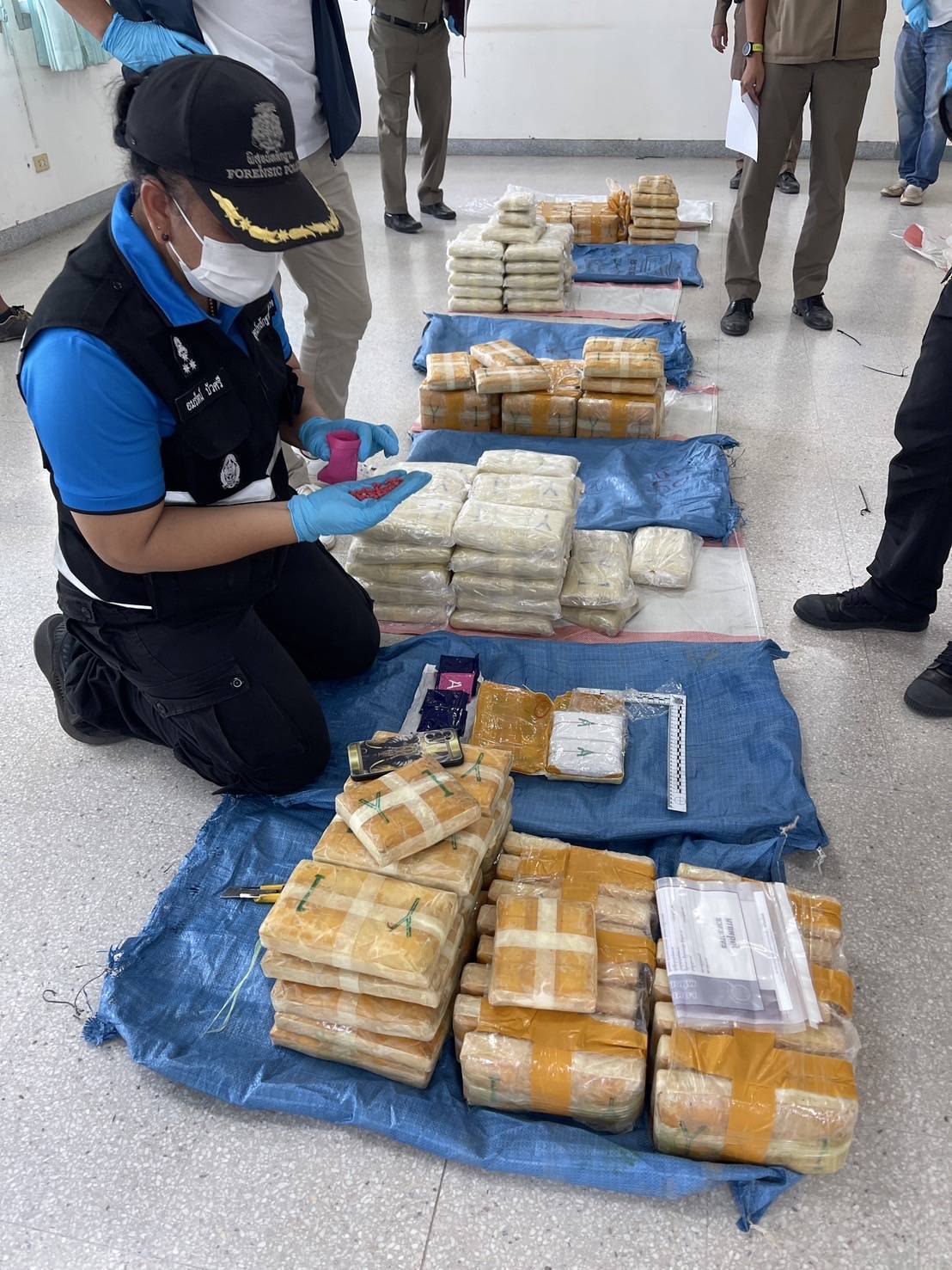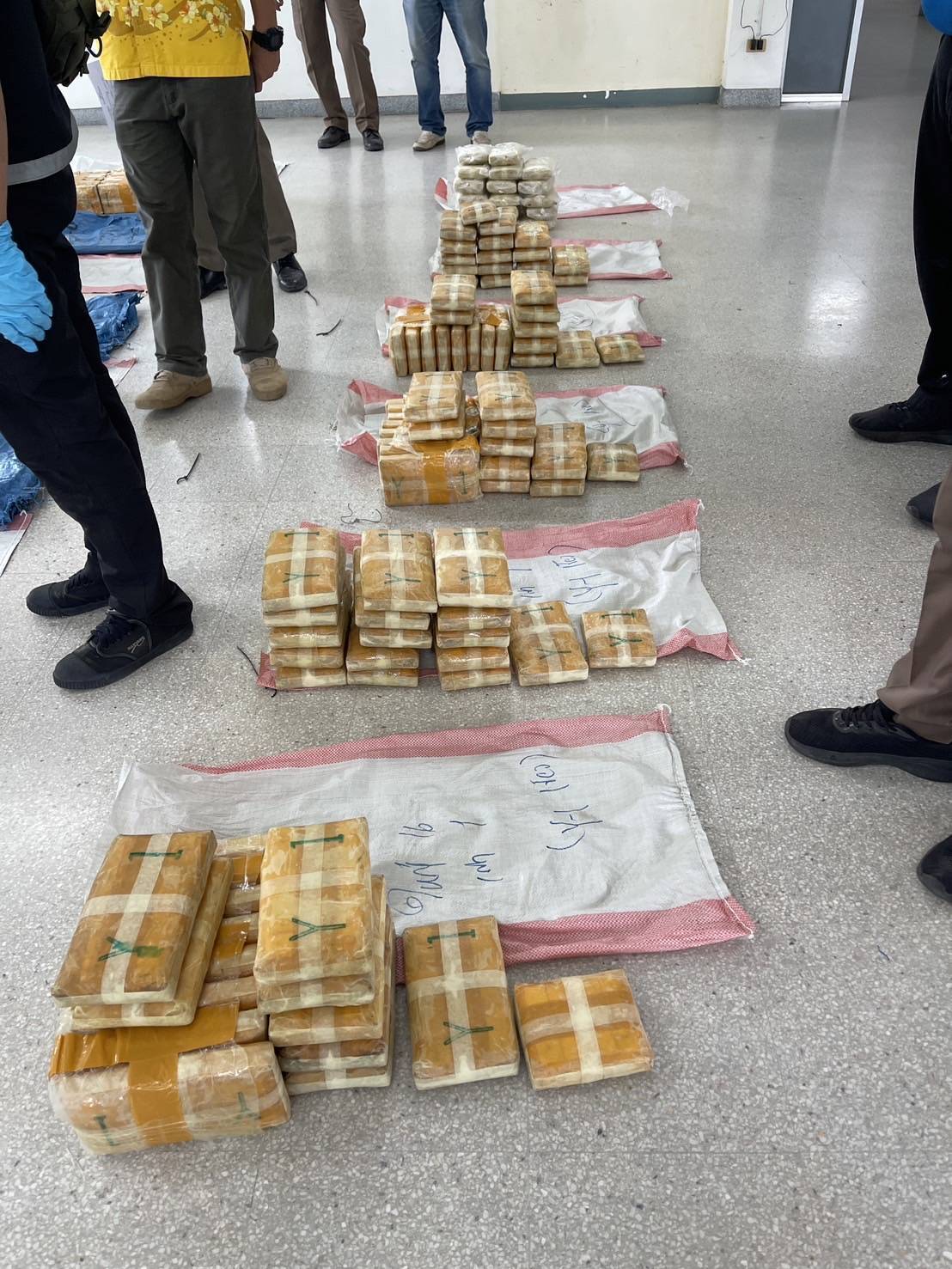 เมื่อทำการตรวจสอบภายในรถยนต์ พบกระสอบปุ๋ยสีน้ำเงินและสีขาวน่าสงสัยจำนวนมาก อยู่บริเวณเบาะด้านหลัง จึงได้แจ้งให้ผู้บังคับบัญชาทราบ พร้อมแจ้งพิสูจน์หลักฐานจังหวัดมุกดาหาร ออกตรวจที่เกิดเหตุร่วมกัน จากการตรวจสอบภายในกระสอบปุ๋ยพบเป็นยาบ้า จำนวนประมาณ 1,600,000 เม็ด (หนึ่งล้านหกแสนเม็ด) จึงได้ทำการตรวจยึดยาบ้าดังกล่าวพร้อมของกลางทั้งหมด เพื่อสืบสวนสอบสวนหาตัวผู้กระทำผิดมารับโทษต่อไป