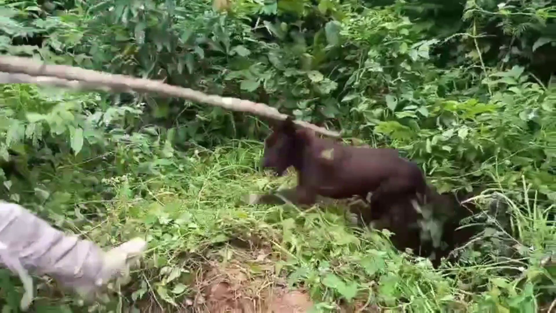 “ศรีสะเกษ” เปิดภาพนาทีชีวิตช่วยเหลือเจ้าตูบพลาดตกหลุมลึกกลางป่าเขาพระวิหาร