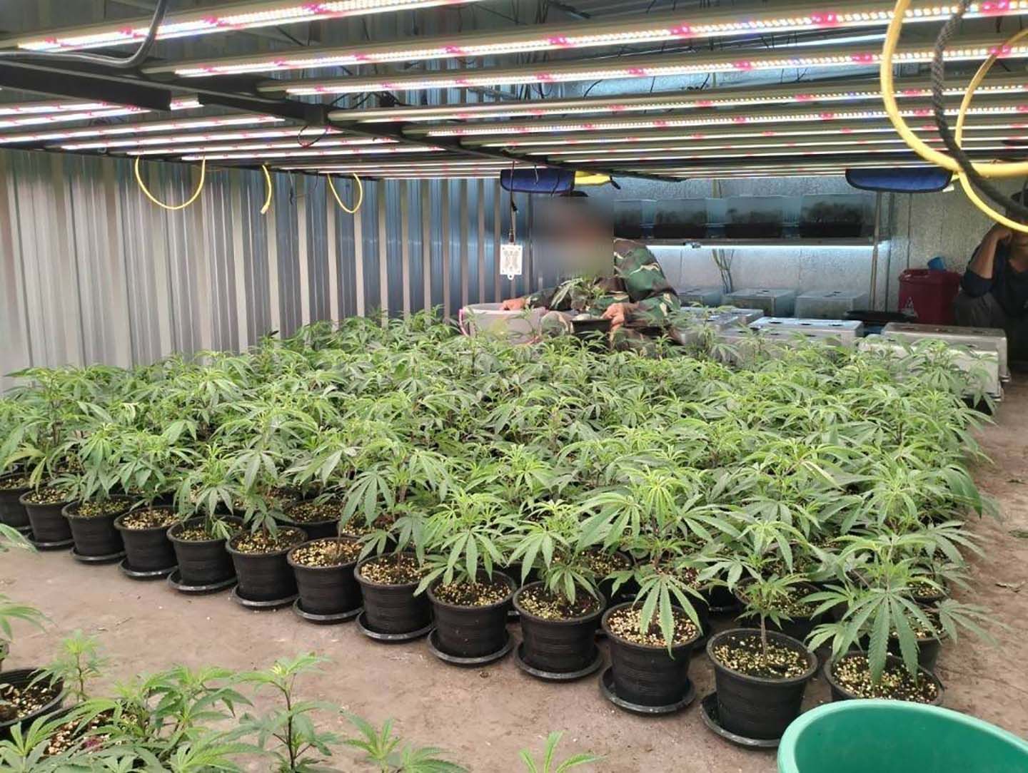 เมื่อตรวจสอบภายในโกดังพบ นายดาว(นามสมมติ) อายุ 37 ปี สัญชาติ เวียดนาม พร้อมพวกรวม 6 คน กำลังทำงาน กสิกรรมต้นกัญชา (ปลูก จัดเรียง บำรุงรักษา)โดยมีนายก้อง(นามสมมติ) อายุ 46 ปี สัญชาติไทย เป็นคนกำกับดูแลแรงงานคนต่างด้าว และเป็นผู้เช่าโกดังหลังดังกล่าว