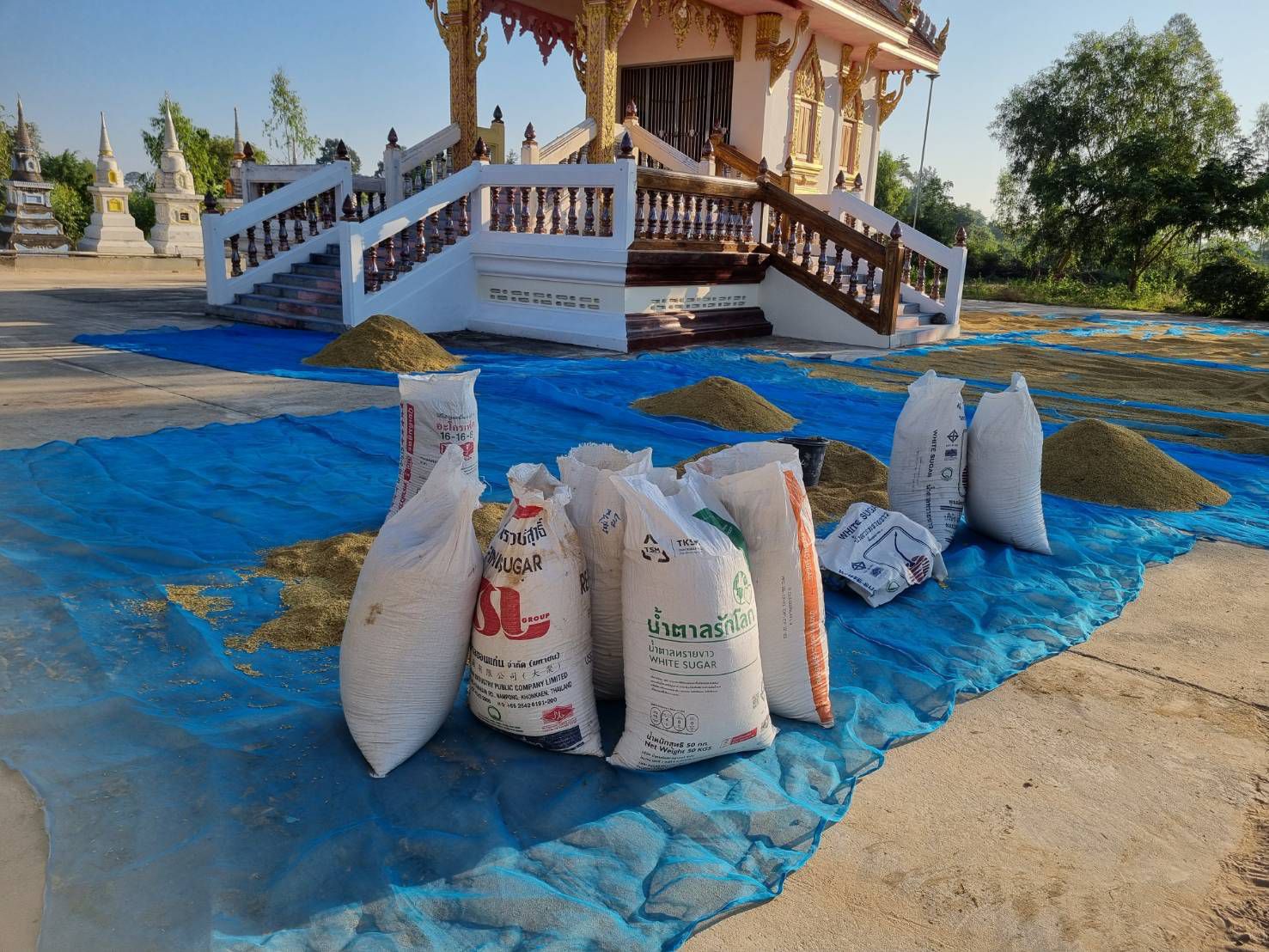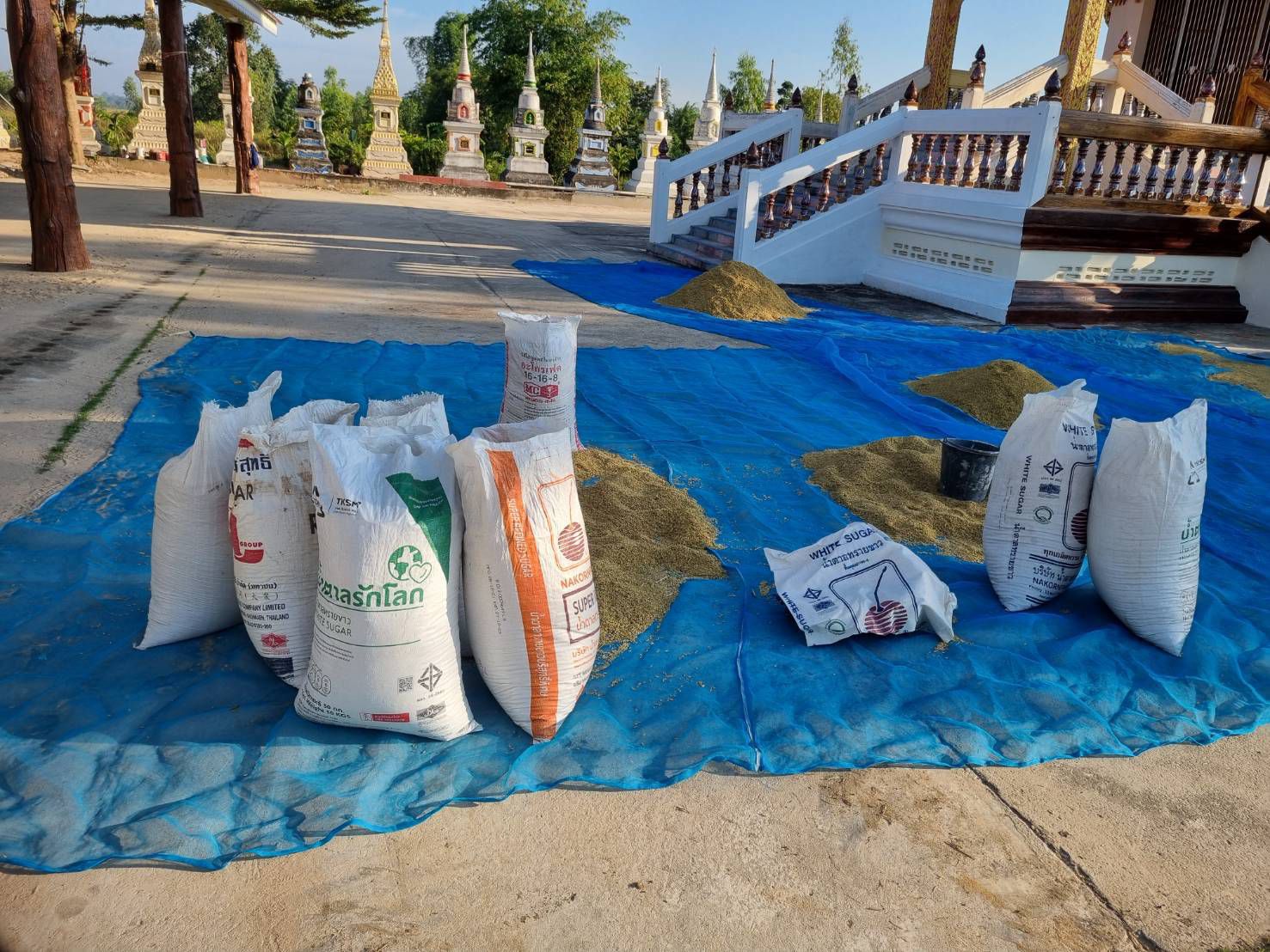 เมื่อวันที่ 12 พ.ย. 67 ผู้สื่อข่าวรายงานว่า ชาวบ้านในพื้นที่บ้านโคกตาล หมู่ 1 ต.โคกตาล อ.ภูสิงห์ จ.ศรีสะเกษ ต่างนำข้าวเปลือกที่เพิ่งเก็บเกี่ยวได้มาตากแห้ง บริเวณลานวัดและรอบเมรุเผาศพ ก่อนที่จะนำขึ้นเก็บบนยุ้งข้าว โดยเฉพาะ นายอำนวย ธรรมพร อายุ 55 ปี ชาวบ้านในพื้นที่ กล่าวว่า สาเหตุที่ได้นำข้าวมาตาก เนื่องจากไม่อยากนำข้าวไปตากตามถนน เพราะเกรงว่าจะเสี่ยงต่อการเกิดอันตราย และอาจถูกลักขโมยได้ ชาวบ้านจึงได้มาขอความอนุเคราะห์จาก หลวงพ่อเจ้าอาวาส ท่านจึงเมตตาอนุญาตให้ชาวบ้านใช้พื้นที่ลานวัดตากข้าวได้ทั่วทั้งบริเวณ เพราะเชื่อว่าปลอดภัยดี มีแสงสว่างเพียงพอ และมีพระจำวัดอยู่ อีกทั้งยังเชื่อว่าอาจมีผีคอยคุ้มกันโจร อีกด้วย