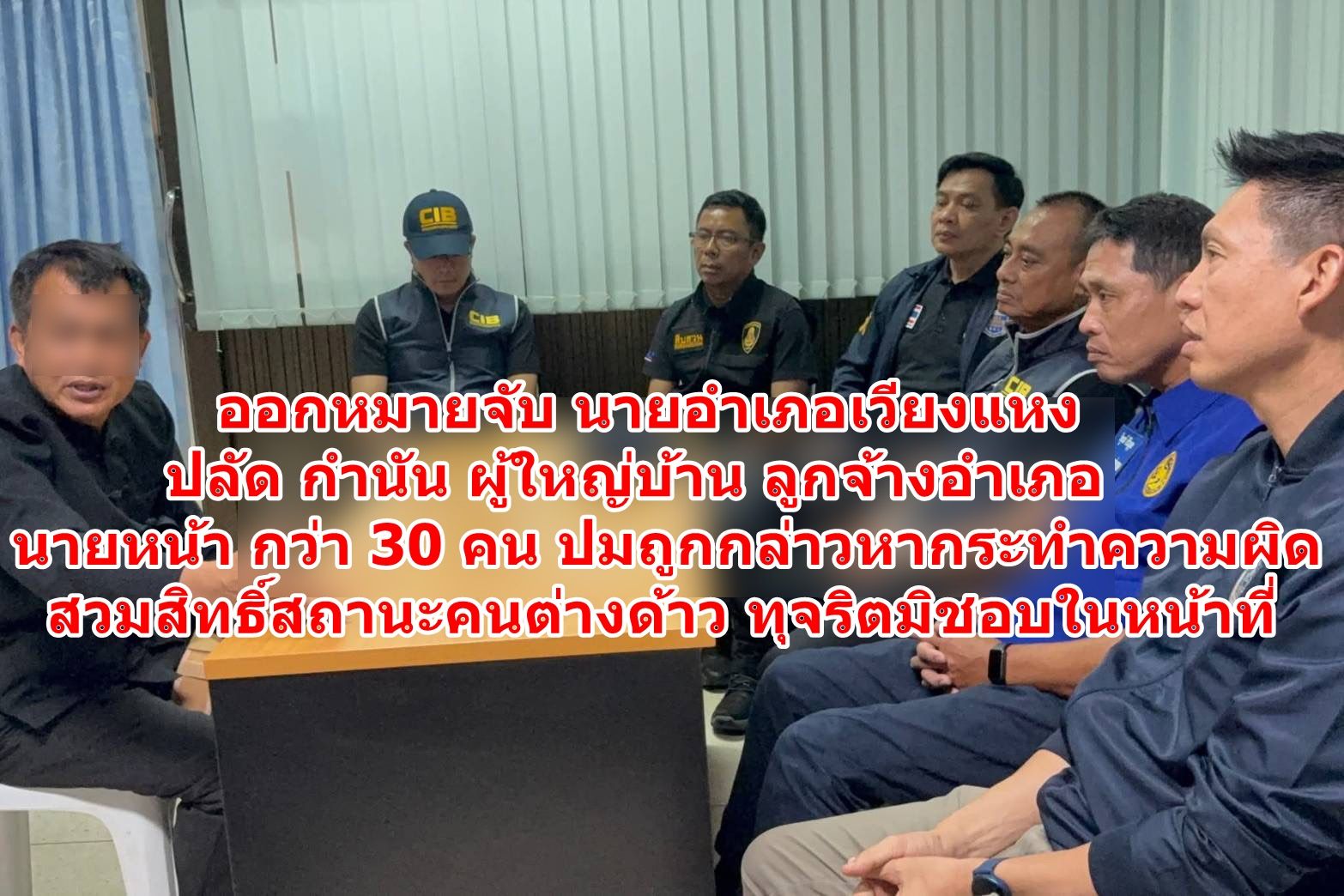 ออกหมายจับ นายอำเภอเวียงแหง ปลัด กำนัน ผู้ใหญ่บ้าน ลูกจ้างอำเภอ นายหน้า กว่า 30 คน ปมถูกกล่าวหากระทำความผิดสวมสิทธิ์สถานะคนต่างด้าว ทุจริตมิชอบในหน้าที่