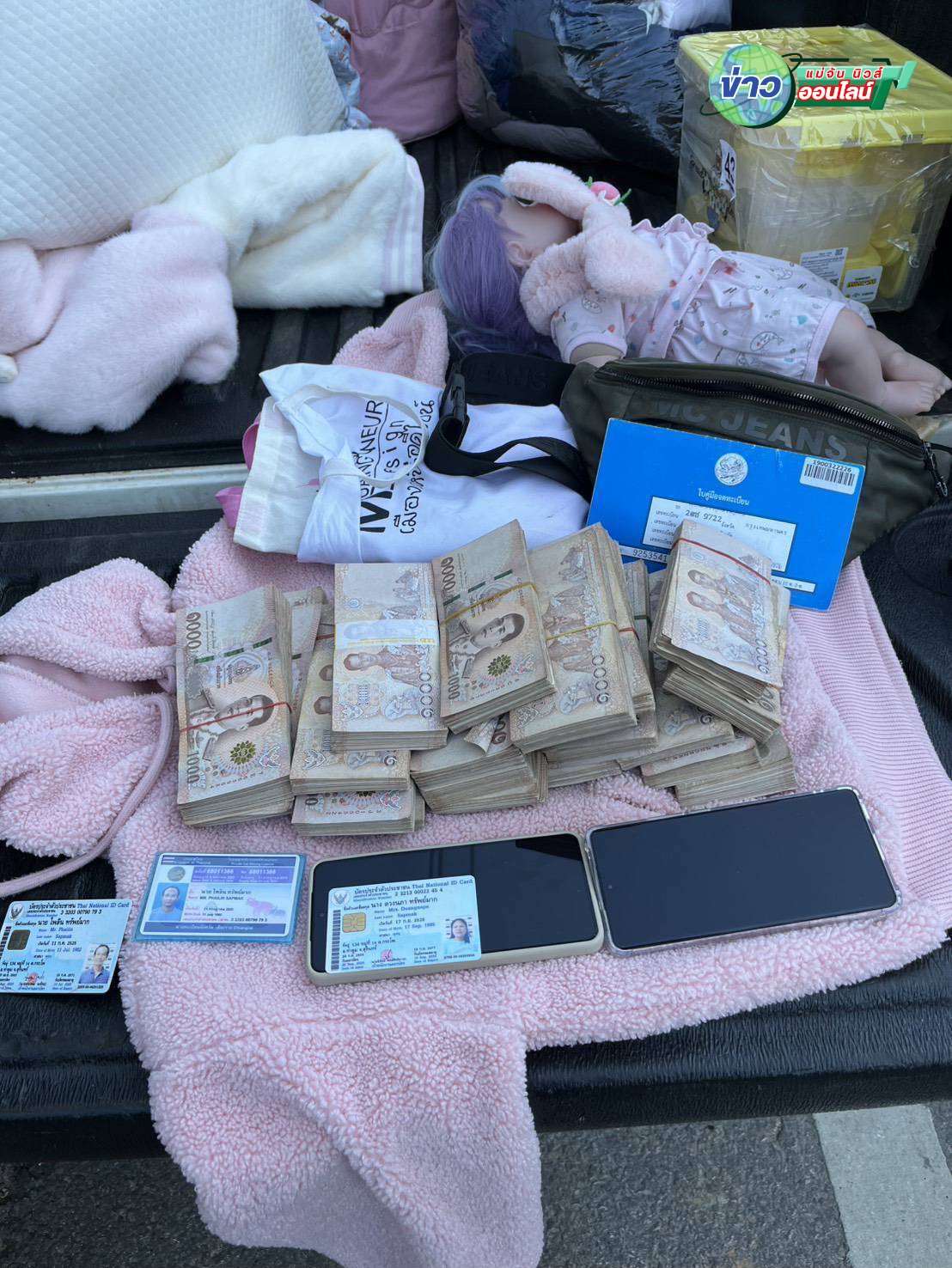 ภายหลังจากการตรวจพบที่รถคันดังกล่าวตามที่แหล่งข่าวรายงาน เป็นยี่ห้อฟอร์ด ป้ายทะเบียนกรุงเทพฯ มีนายไพลิน อายุ 43 ปี ชาว อ.ท่าตูม จ.สุรินทร์ เป็นคนขับและมีนางดวงสภา อายุ 40 ปี อาศัยอยู่ที่เดียวกันนั่งโดยสารมาด้วย เจ้าหน้าที่จึงขอตรวจค้นภายในรถปรากฎว่าพบกล่องพลาสติกสำหรับใส่เสื้อผ้าวางอยู่ท้ายกระบะ เมื่อเปิดดูภายในพบบรรจุธนบัตรเป็นเงินสดจำนวนมากดังกล่าว เจ้าหน้าที่จึงสอบถามที่มาของเงินสดปรากฎว่าทั้ง 2 คน ไม่สามารถแจ้งรายละเอียดรวมทั้งไม่สามารถนำเอกสารมาแสดงที่มาของเงินได้ด้วย