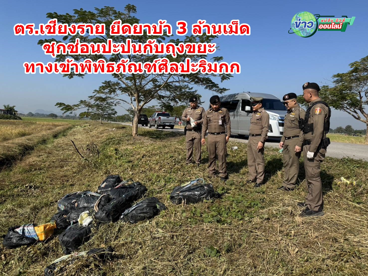 ตร.เชียงราย ยึดยาบ้า 3 ล้านเม็ด ซุกซ่อนปะปนกับถุงขยะ ทางเข้าพิพิธภัณฑ์ศิลปะริมกก
