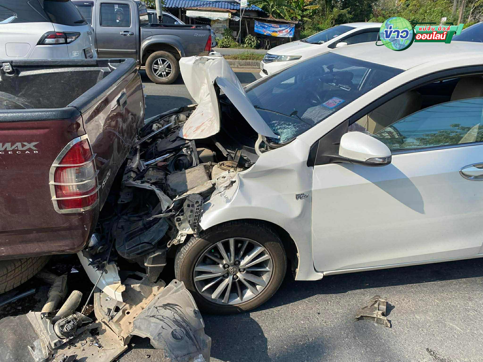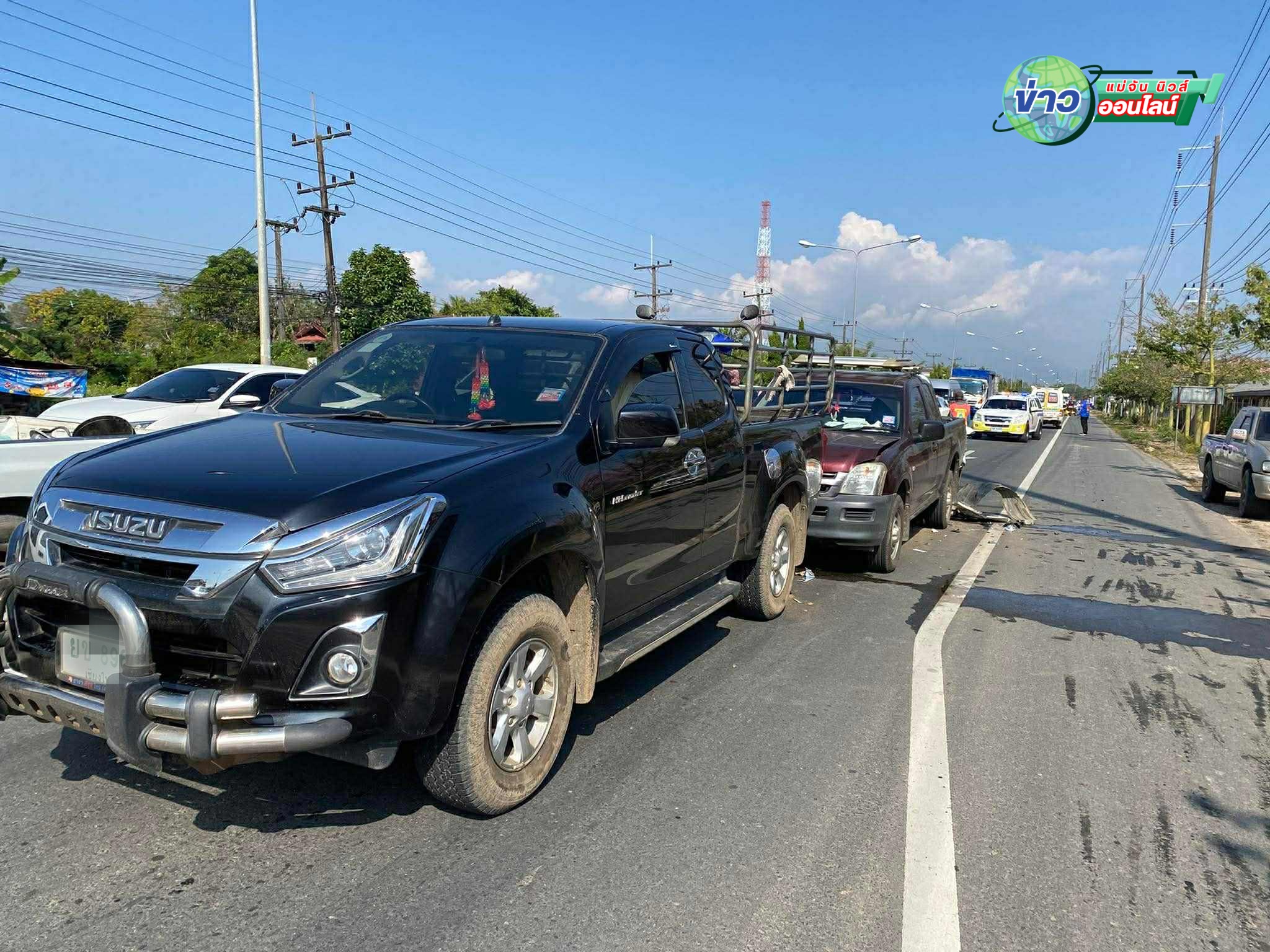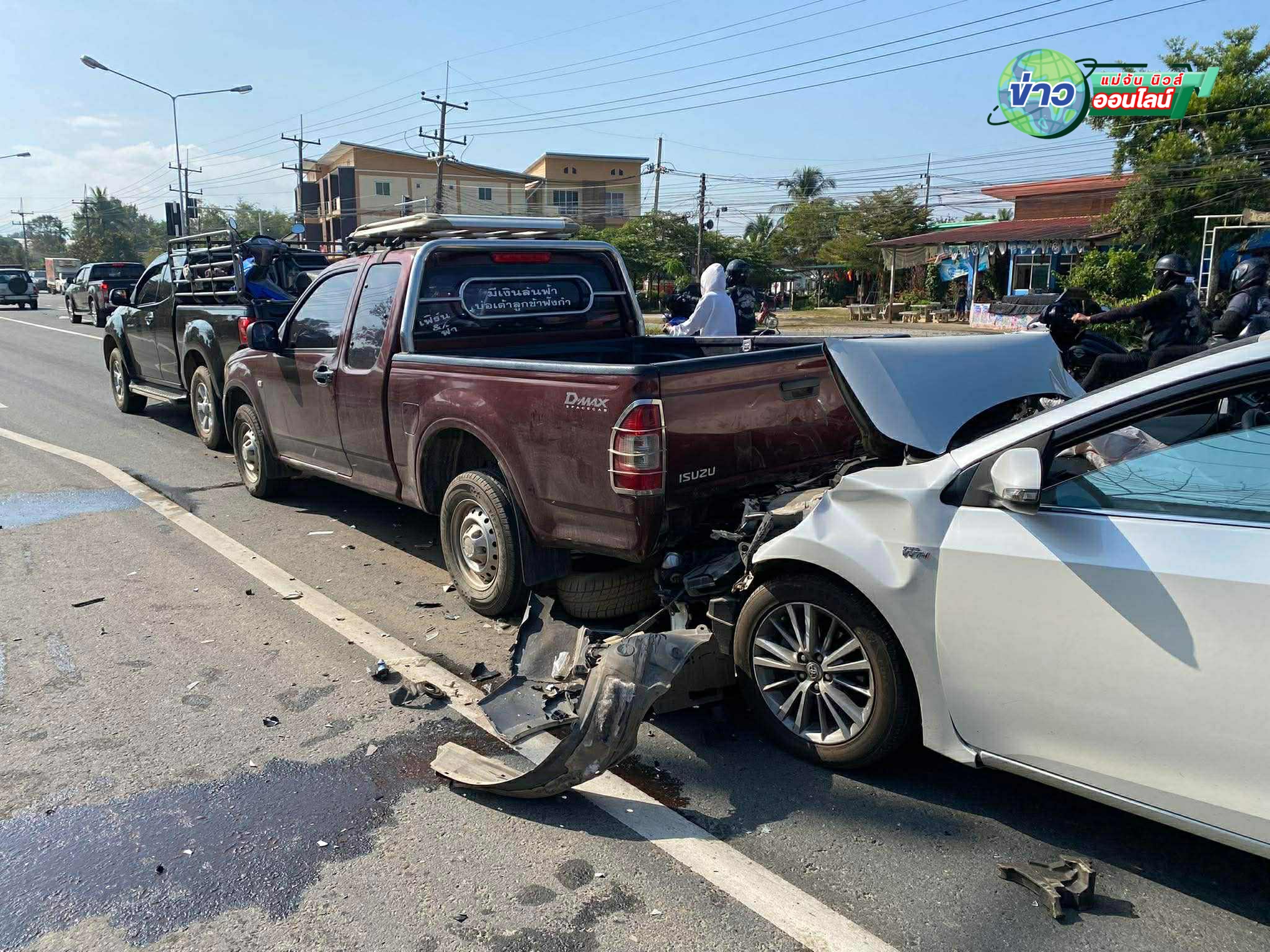 เมื่อถึงจุดเกิดเหตุ พบรถยนต์ชนท้ายต่อเนื่องกันจำนวน 3 คัน เป็นรถกระบะและรถเก๋ง ได้รับความเสียหายบริเวณด้านหน้าและด้านท้าย แต่โชคดีไม่มีผู้ใดได้รับบาดเจ็บจากเหตุการณ์ครั้งนี้