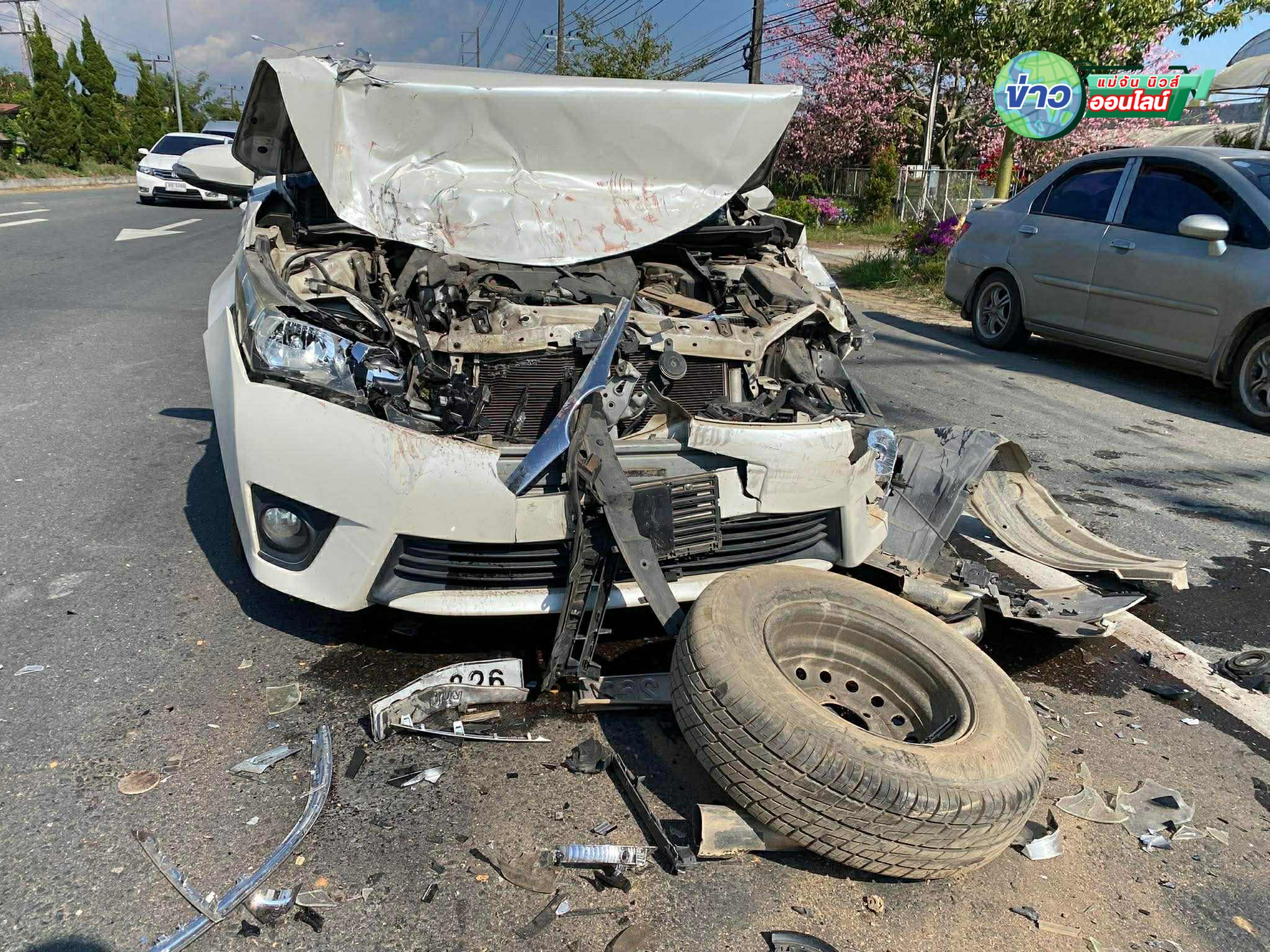 แม่จัน! ชนสนั่นแยกไฟแดงสันสลีหลวง รถชนท้าย 3 คันรวด การจราจรชะลอตัว โชคดีไร้ผู้บาดเจ็บ