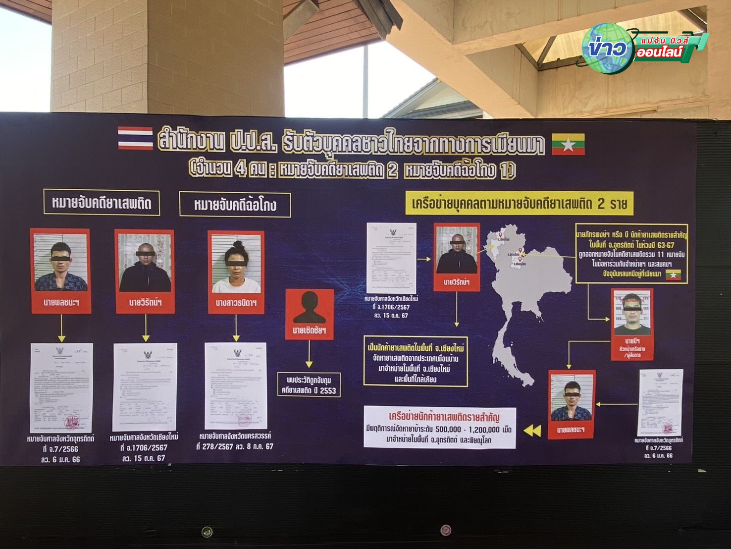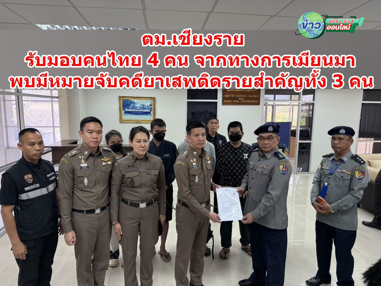 ตม.เชียงรายรับมอบคนไทย 4 คน จากทางการเมียนมา พบมีหมายจับคดียาเสพติดรายสำคัญทั้ง 3 คน