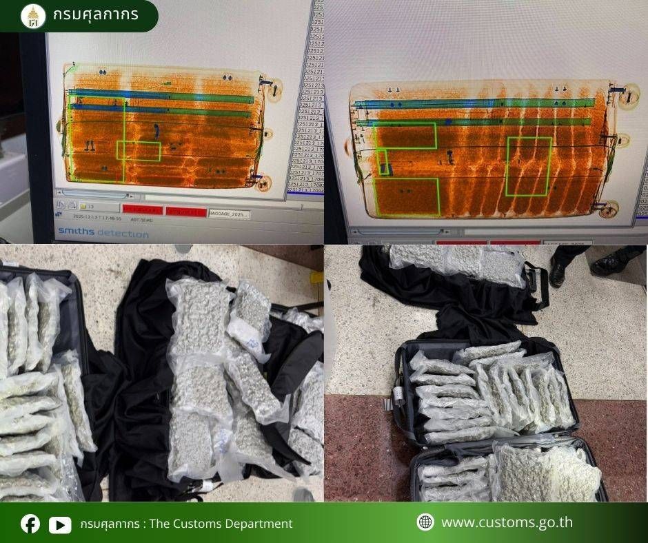 หลังจากหัวค่ำวันที่ 13 ธ.ค.68 ที่ผ่านมาเจ้าหน้าที่ตรวจค้นสัมภาระภายในอาคารรับรองผู้โดยสารฝั่งขาออกได้ตรวจพบสัมภาระเป็นกระเป๋าเดินทางของผู้โดยสารใบหนึ่งมีวัตถุต้องสงสัยอยู่ภายในหลังจากให้ผ่านเครื่องเอ๊กซเรย์ เจ้าหน้าที่จึงได้แจ้งผู้นำกระเป๋าดังกล่าวเข้ามาคือชาวเกาหลีใต้ทั้ง 2 คนดังกล่าว จากนั้นได้ทำการเปิดพิสูจน์ภายในต่อหน้าคู่ ปรากฎว่าพบในกระเป๋าบรรจุซองสูญญากาศจำนวน 81 ซอง ภายในซองบรรจุกัญชาอัดแห้งน้ำหนักรวมประมาณ 46 กิโลกรัม