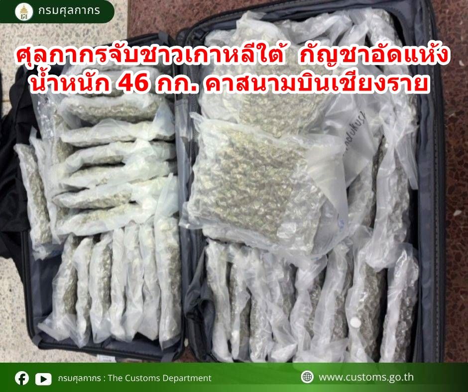 ศุลกากรจับชาวเกาหลีใต้ กัญชาอัดแห้ง น้ำหนัก 46 กก. คาสนามบินเชียงราย