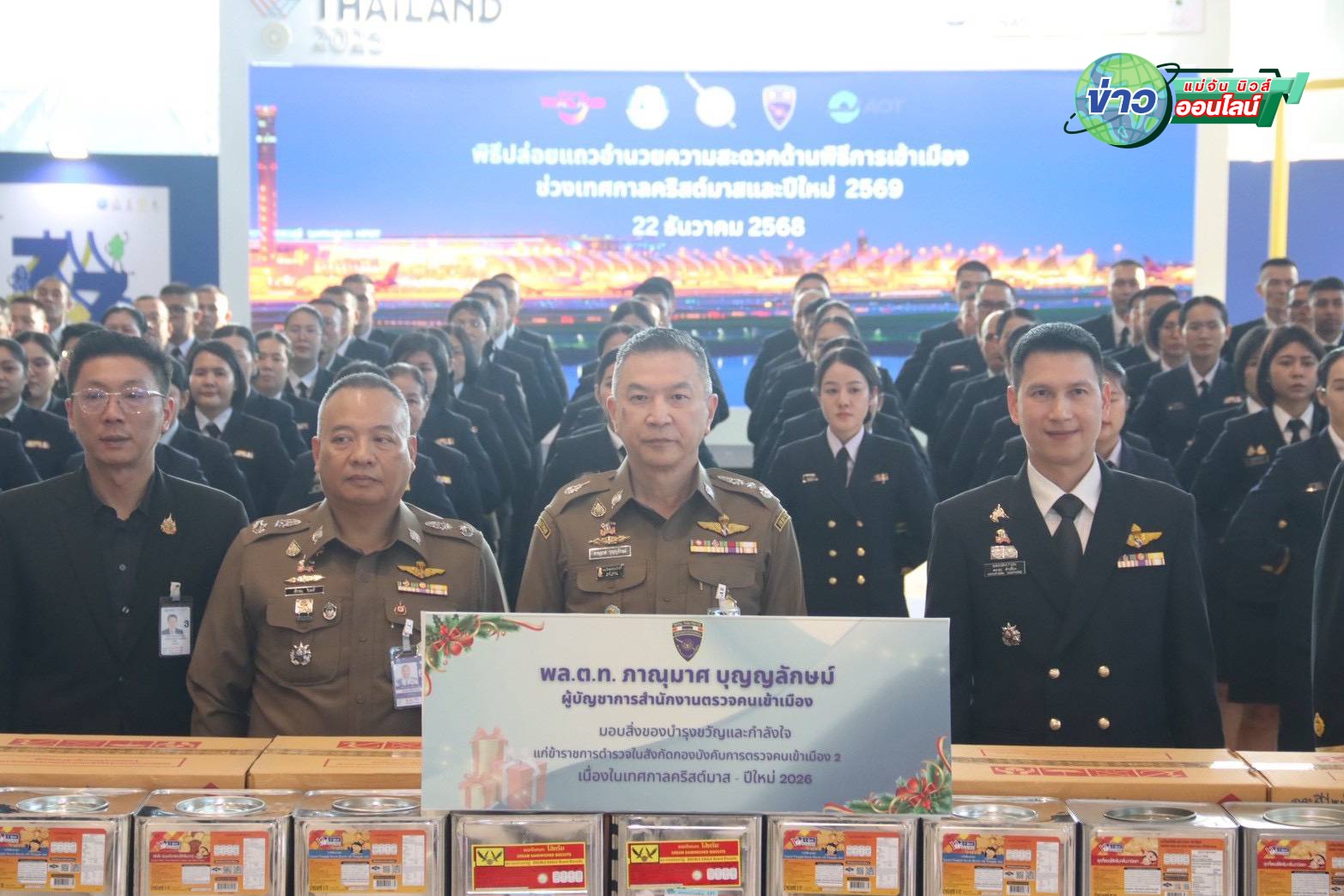 สำนักงานตรวจคนเข้าเมือง ร่วมกับ การท่องเที่ยวแห่งประเทศไทย เดินหน้ายกระดับการดูแลและอำนวยความสะดวกด้านพิธีการเข้าเมืองในช่วงเทศกาลคริสต์มาสและปีใหม่ 2569 เพื่อรองรับการเดินทางของนักท่องเที่ยวทั้งชาวไทยและชาวต่างประเทศที่คาดว่าจะเพิ่มสูงขึ้นอย่างต่อเนื่อง พร้อมสร้างความเชื่อมั่นในความปลอดภัย และสร้างความประทับใจตั้งแต่ก้าวแรกที่เดินทางถึงประเทศไทย