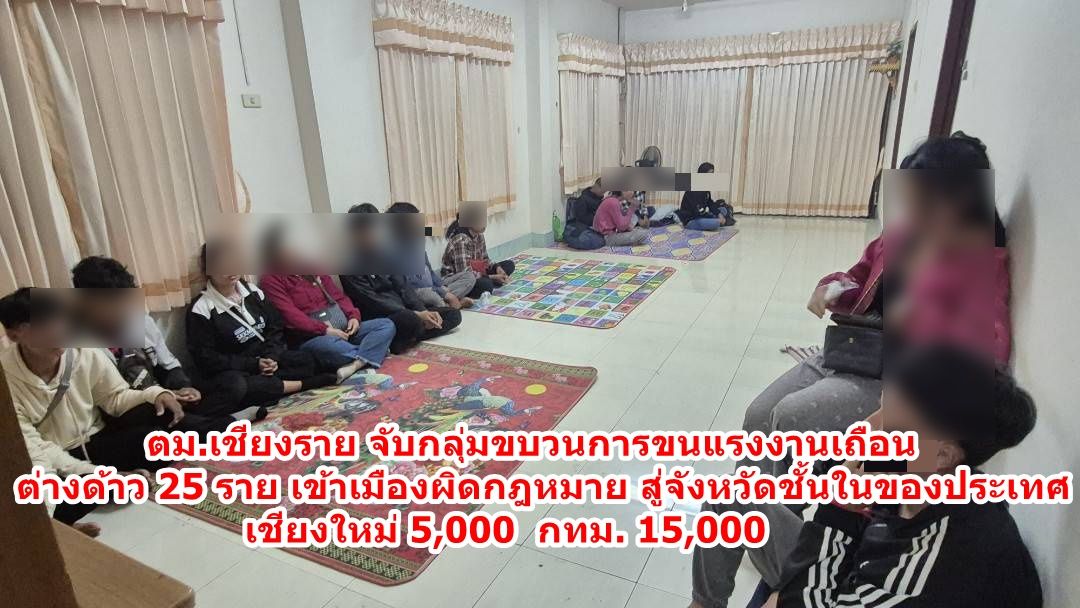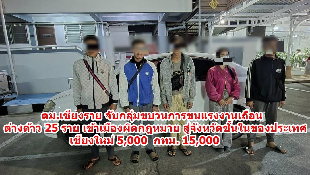 ตม.เชียงราย จับกลุ่มขบวนการขนแรงงานเถือนต่างด้าว 25 ราย เข้าเมืองผิดกฎหมาย สู่จังหวัดชั้นในของประเทศ เชียงใหม่ 5,000 กทม. 15,000
