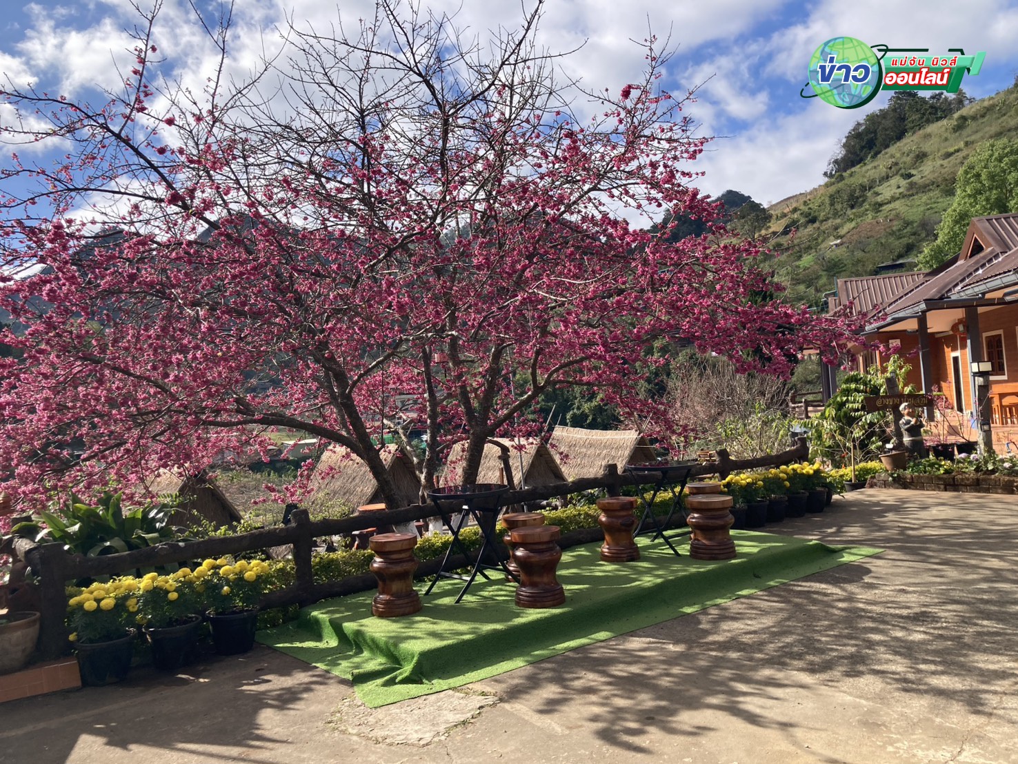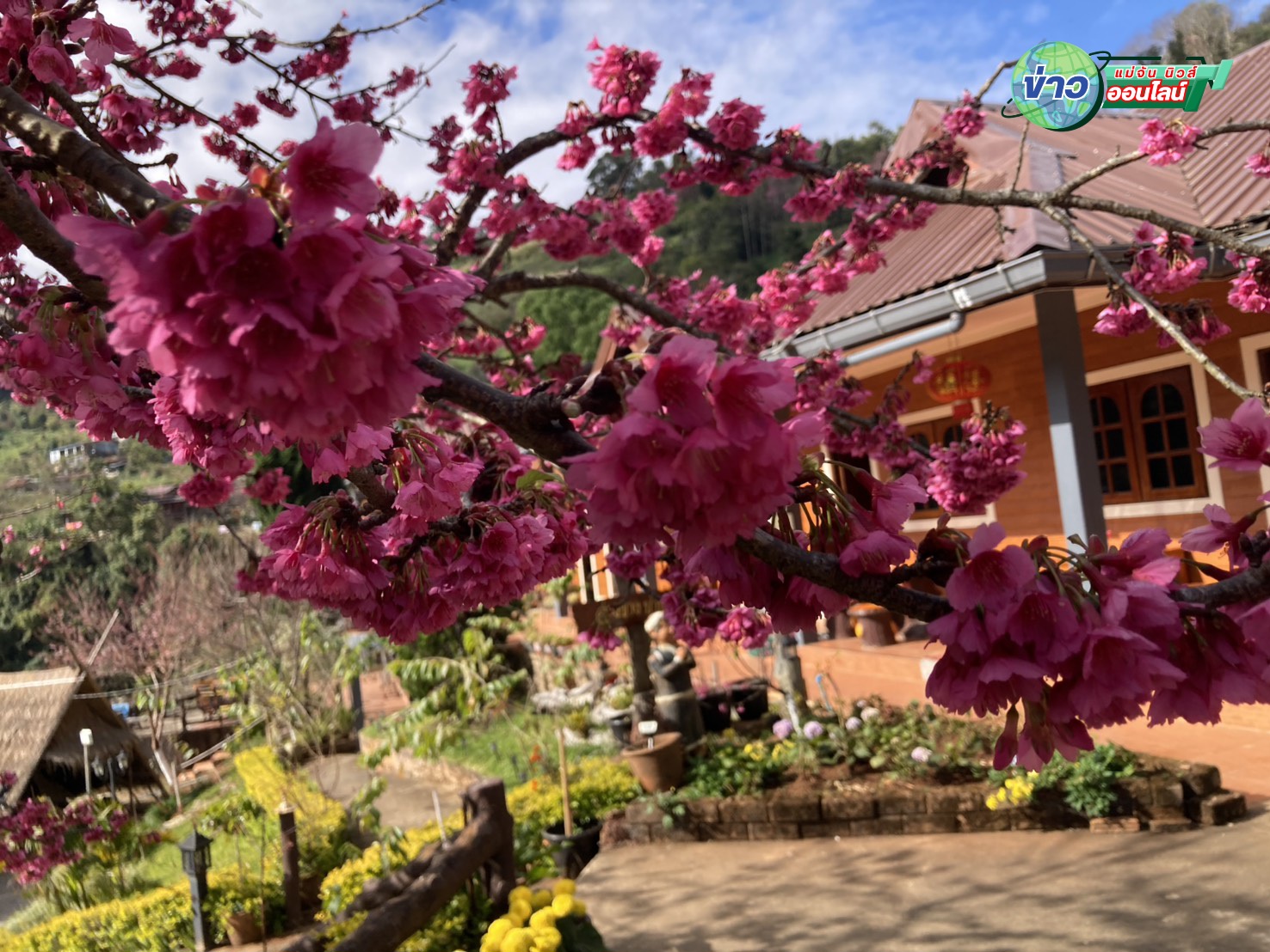 เมื่อวันที่ 29 ธันวาคม 2568 ผู้สื่อข่าวรายงานบรรยากาศการท่องเที่ยวบน ดอยอ่างขาง บ้านคุ้ม หมู่ที่ 5 ตำบลแม่งอน อำเภอฝาง จังหวัดเชียงใหม่ ซึ่งมีความสูงกว่าระดับน้ำทะเล 1,400 เมตร ขณะนี้ดอกซากุระแท้ที่นำเข้ามาจากประเทศญี่ปุ่นเริ่มผลิบานให้นักท่องเที่ยวได้ชื่นชมแล้ว แม้ปีนี้จะออกดอกช้ากว่าปกติ แต่บริเวณ สวนเฉลิมพระเกียรติ 72 พรรษา (ฝั่งขวาของป้าย) ต้นแม่พันธุ์ได้ออกดอกบานสะพรั่งเต็มต้นอย่างสวยงาม และคาดว่าจะทยอยบานเพิ่มขึ้นในช่วงเทศกาลปีใหม่นี้
