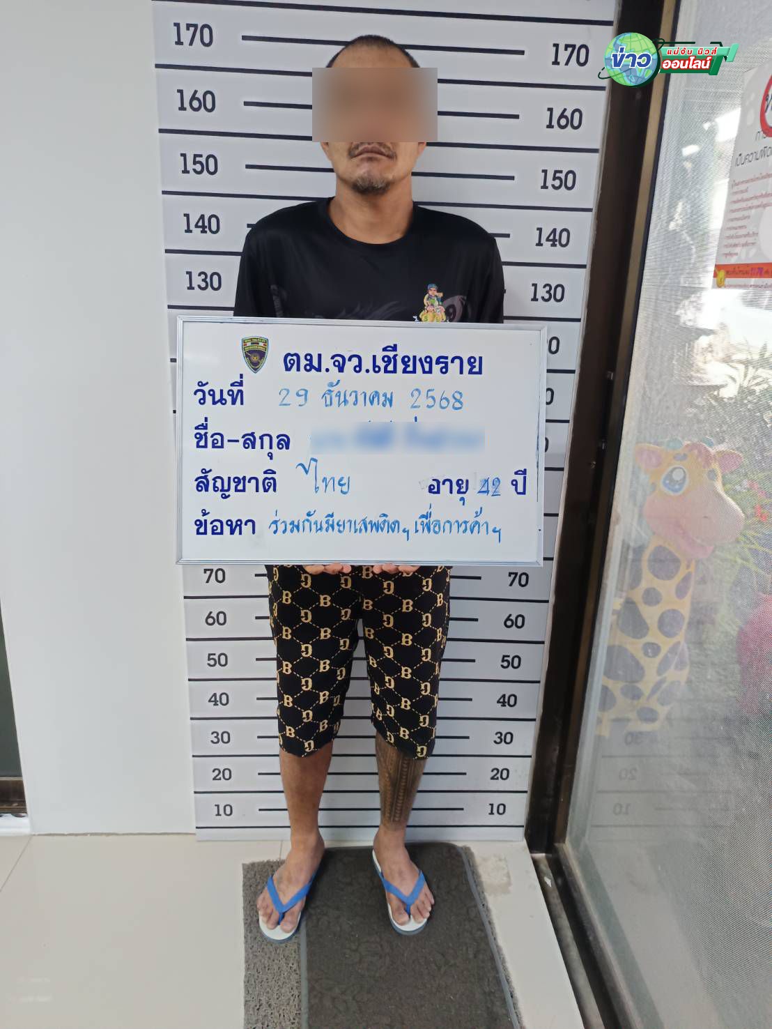 นายหัสดี อายุ 42 ปี แจ้งข้อหาจำหน่ายยาเสพติดให้โทษประเภท 1 (เมทแอมเฟตามีน) เพื่อการค้าโดยไม่ได้รับอนุญาตดำเนินการตามกฎหมาย