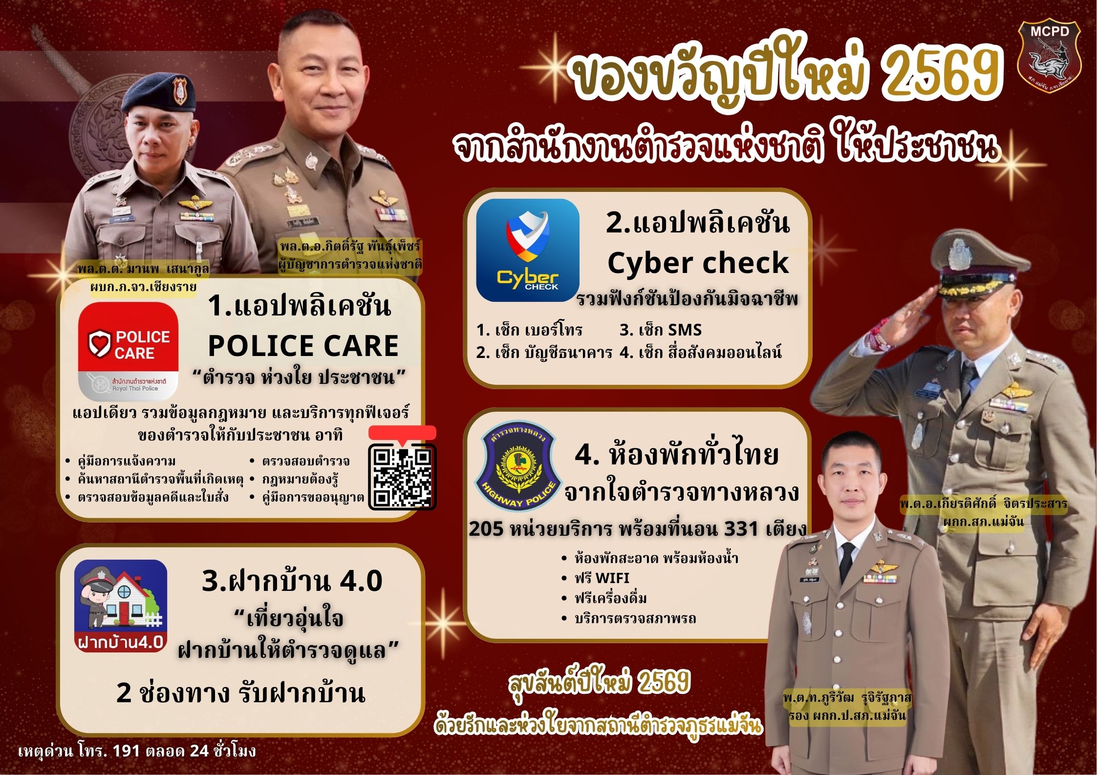 “เพราะความปลอดภัยของประชาชนคือหัวใจสำคัญ สภ.แม่จัน พร้อมดูแลคุณในทุกย่างก้าวของการเดินทาง”