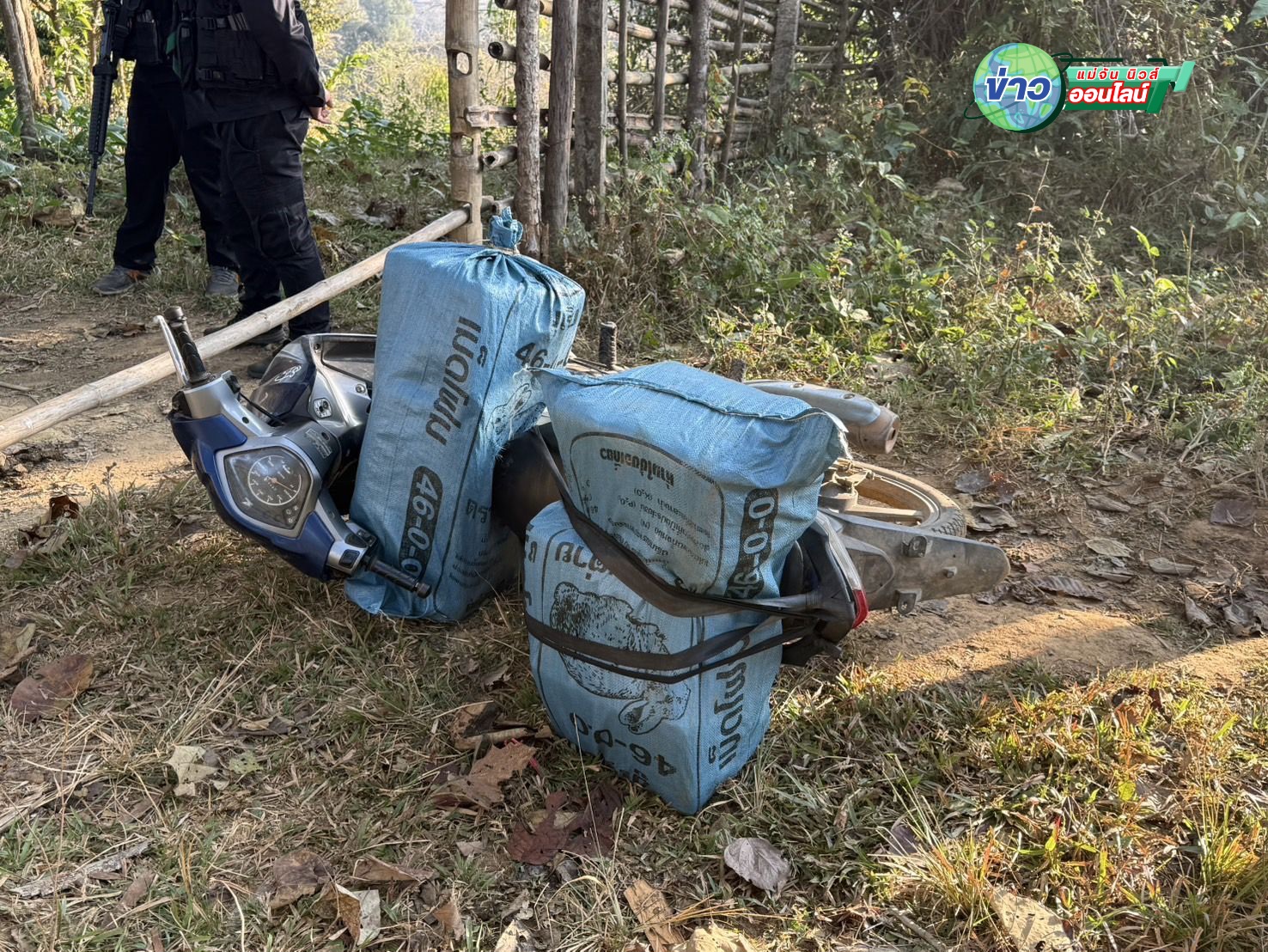 ต่อมาเจ้าหน้าที่ตรวจพบรถจักรยานยนต์จำนวน 1 คัน เป็นยี่ห้อฮอนด้า รุ่นเวฟ ไม่ติดแผ่นป้ายทะเบียน ขับลงมาจากภูเขา โดยที่ด้านหน้าและหลังคนขับบรรทุกกระสอบฟางมาด้วยหลายใบ แต่เมื่อขับมาใกล้จะถึงจุดตรวจจุดสกัดของเจ้าหน้าที่คนขับกลับตื่นตกใจและเลี้ยวรถหลบหนีกลับไปทางเดิม เจ้าหน้าที่จึงได้ติดตามไปจนพบว่าคนขับขี่ได้ทิ้งรถและสัมภาระที่ขนมาด้วยเอาไว้ข้างทางก่อนใช้ความชำนาญวิ่งหลบหนีเข้าป่าไปได้