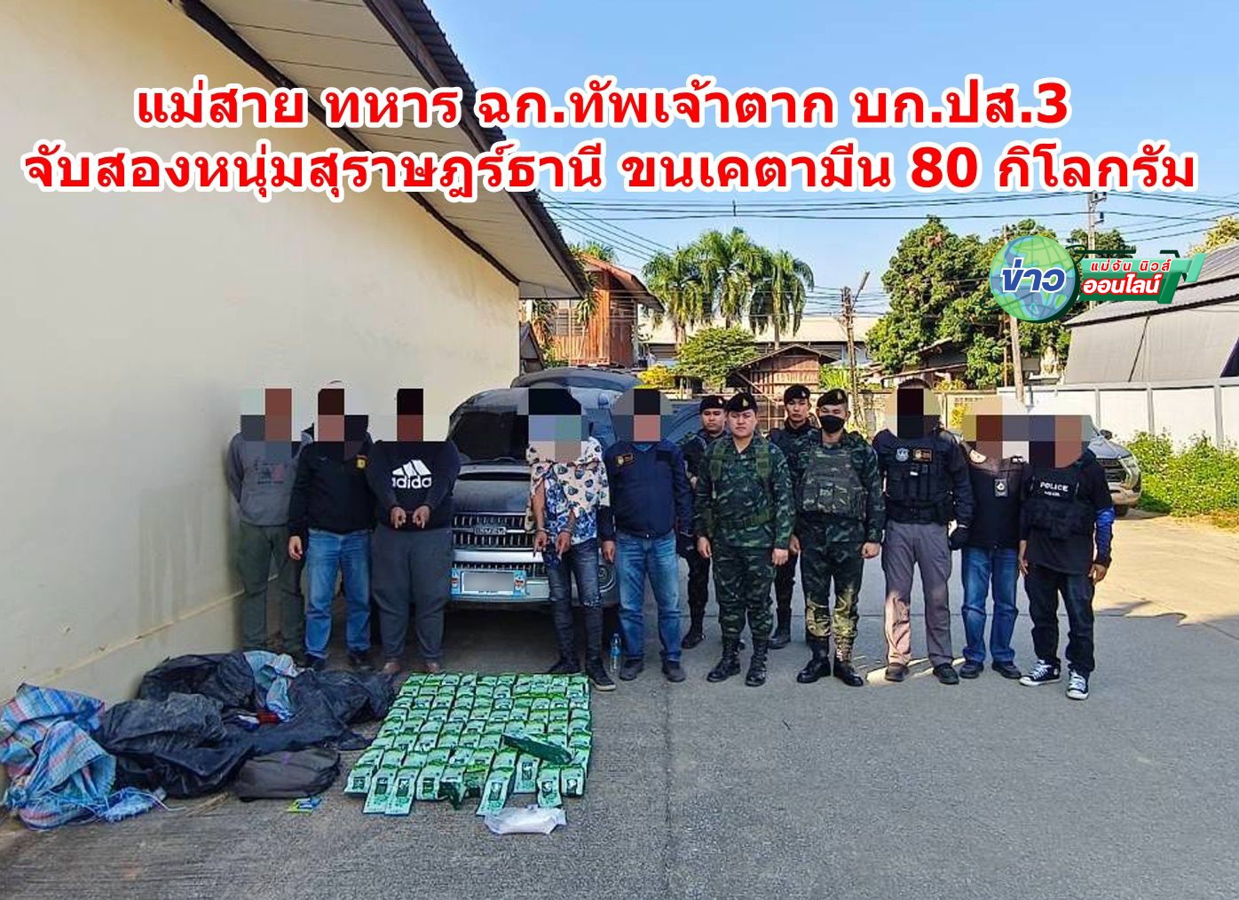 แม่สาย ทหาร ฉก.ทัพเจ้าตาก บก.ปส.3 จับสองหนุ่มสุราษฎร์ธานี ขนเคตามีน 80 กิโลกรัม
