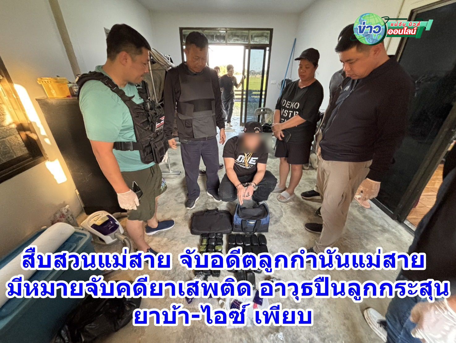 เชียงราย – สืบสวนแม่สาย ปิดเกม “อดีตลูกกำนัน” หนีหมายจับ ขยายผลค้นรังเจอของกลางอื้อ ทั้งปืนเถื่อนและยาเสพติดเตรียมกระจายสู่เยาวชน