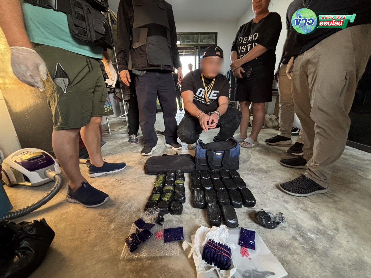 เมื่อวันที่ 23 มกราคม 2569 เวลา 16.40 น. ที่ผ่านมา ภายใต้การอำนวยการของ พล.ต.ต.มานพ เสนากุล ผบก.ภ.จว.เชียงราย พ.ต อ รัฐพล น้อยช่างคิด รอง ผบก.ภ.จว.เชียงราย พ.ต.อ.พิพัฒน์ นาระเดช รอง ผบก.ภ.จว.เชียงราย, พ.ต.อ.จิรภาส ศักดิ์สูง ผกก.สภ.แม่สาย, พ.ต.ท.จิรพัชร ผู้มีทรัพย์ รอง ผกก.สส.สภ.แม่สาย พ.ต.ท.วงศกร ธนานนทพันธ์ สว.สส.สภ.แม่สาย,ร.ต.อ.สวาท บุญบำรุง รอง สวป.สภ.แม่สาย พร้อมเจ้าหน้าที่ชุดสืบสวน สภ.แม่สาย ได้แถลงการณ์จับกุมผู้ต้องหาตามหมายจับคดียาเสพติด พร้อมอาวุธพก 9 มม. ยาบ้า 59,420 เม็ด ยาไอซ์ จำนวนหนึ่ง