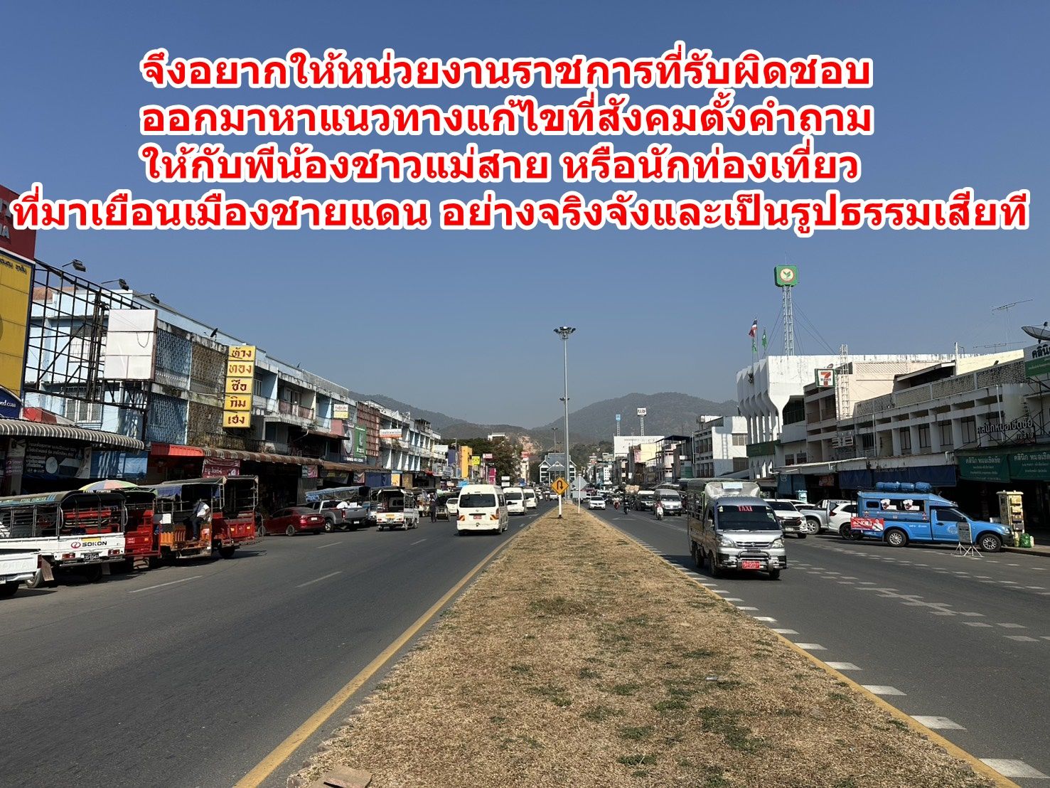 โดยที่ผ่านมาได้เกิดปัญหาแย่งลูกค้ากับคิวรถสองแถว หรือวินมอเตอร์ไซค์ ของฝั่งไทยมาโดยตลอด จึงอยากให้หน่วยงานราชการที่รับผิดชอบออกมาหาแนวทางแก้ไขที่สังคมตั้งคำถาม ให้กับพีน้องชาวแม่สาย – หรือนักท่องเที่ยวที่มาเยือนเมืองชายแดน อย่างจริงจังและเป็นรูปธรรมเสียที.