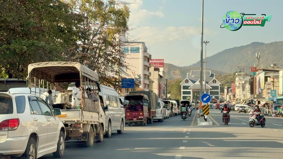 แม่สาย ร่วมกว่า 400 คัน รถสกายแลปสามล้อแดง รถตู้ขนส่งสินค้า รถ 4 ล้อเล็ก ที่เป็นรถรับจ้างเมียนมา วิ่งขับขี่กัน ขวักไขว่ จ้าละวัน