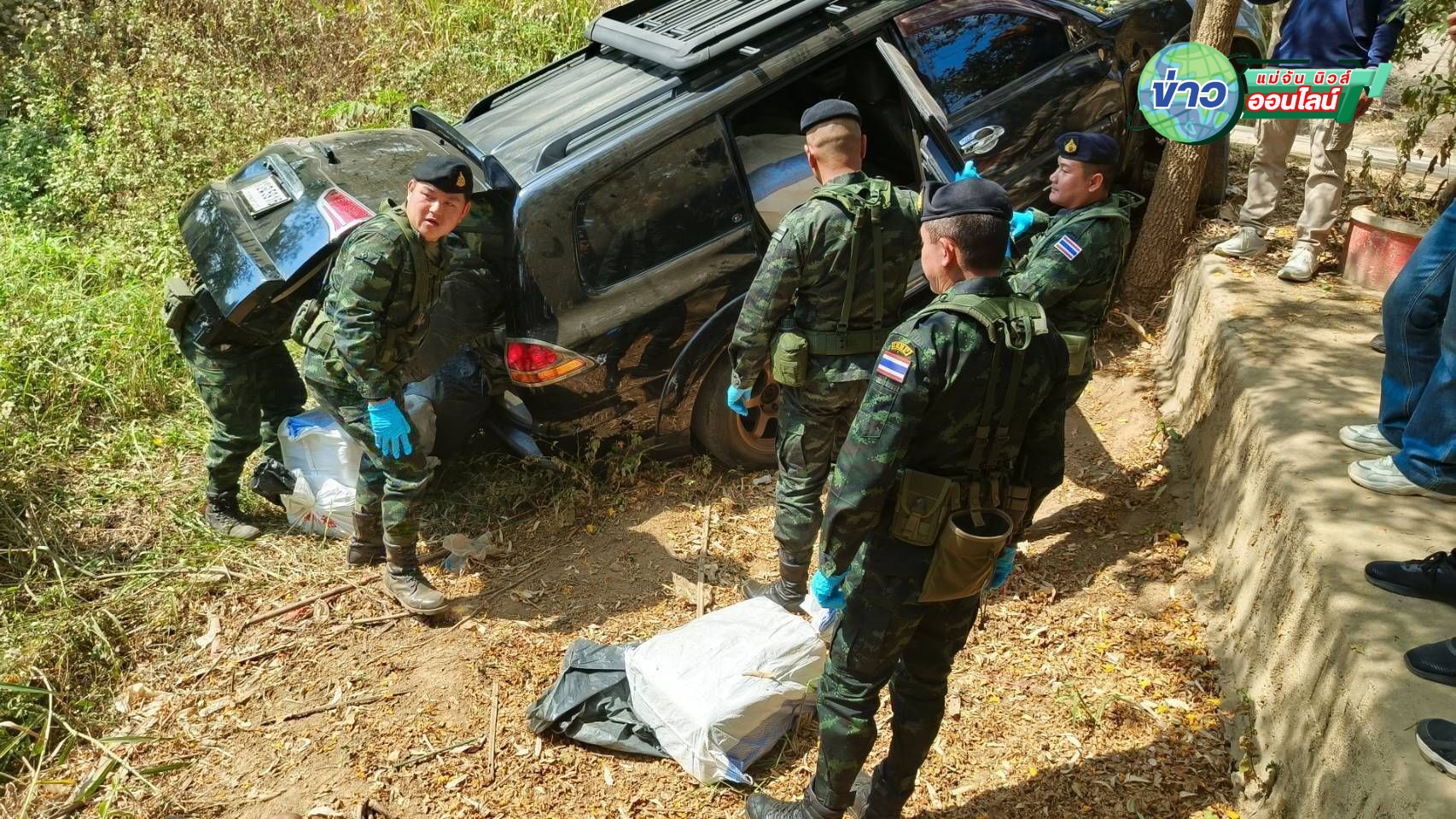 เชียงราย – ระทึกชายแดน! ปาเจโร่ซิ่งหนีด่านเสียหลักตกไหล่ทาง ทิ้งยาบ้ากว่า 5.3 ล้านเม็ดหน้าฐานทหาร