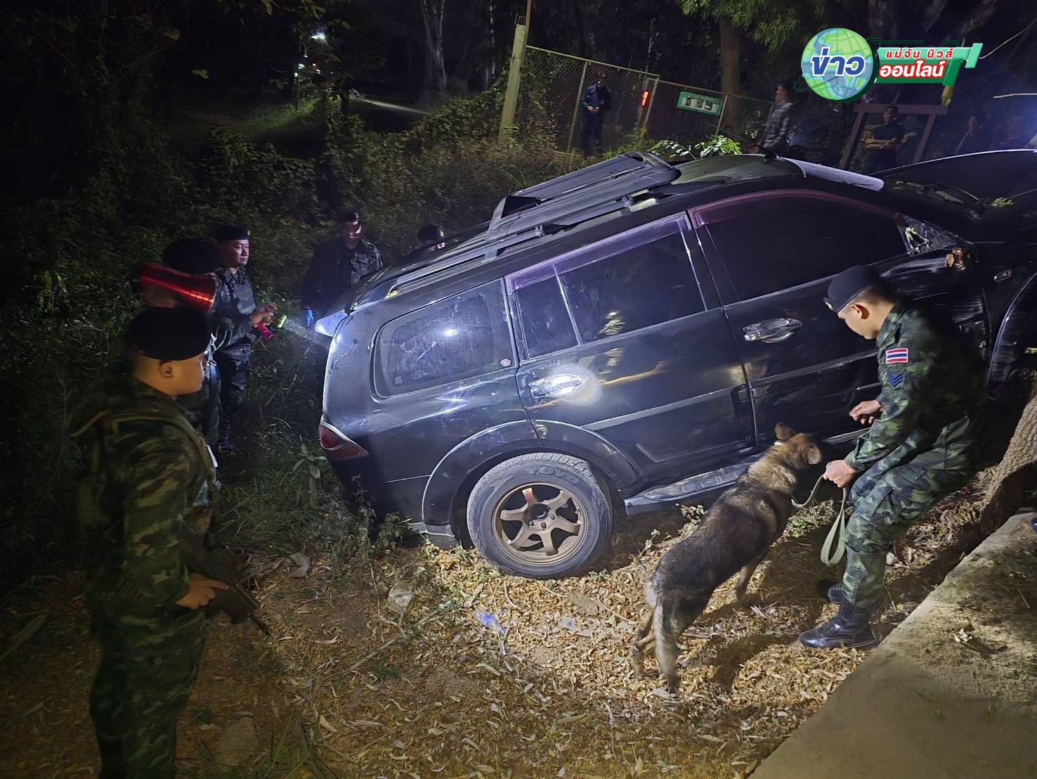 ระหว่างปฏิบัติหน้าที่ เจ้าหน้าที่ตรวจพบรถยนต์ต้องสงสัย ยี่ห้อมิตซูบิชิ รุ่นปาเจโร่ 7 ที่นั่ง สีดำ ทะเบียนกรุงเทพมหานคร ขับเข้ามาตามเส้นทางดังกล่าว แต่เมื่อรถคันดังกล่าวขับเข้าใกล้จุดตรวจประมาณ 500 เมตร บริเวณหน้าฐานปฏิบัติการนเรศวร รถกลับมีท่าทีพิรุธและหักเลี้ยวกลับอย่างกะทันหัน ก่อนเสียหลักพุ่งตกไหล่ทาง ทำให้ไม่สามารถขับต่อไปได้