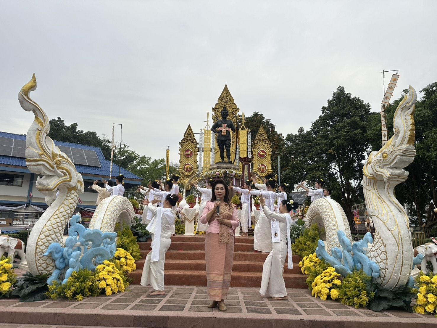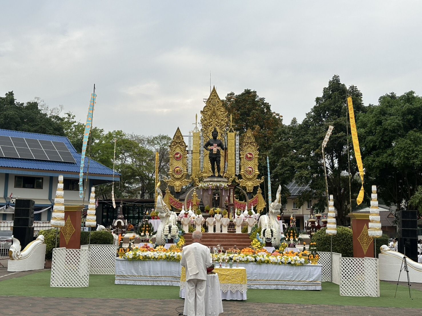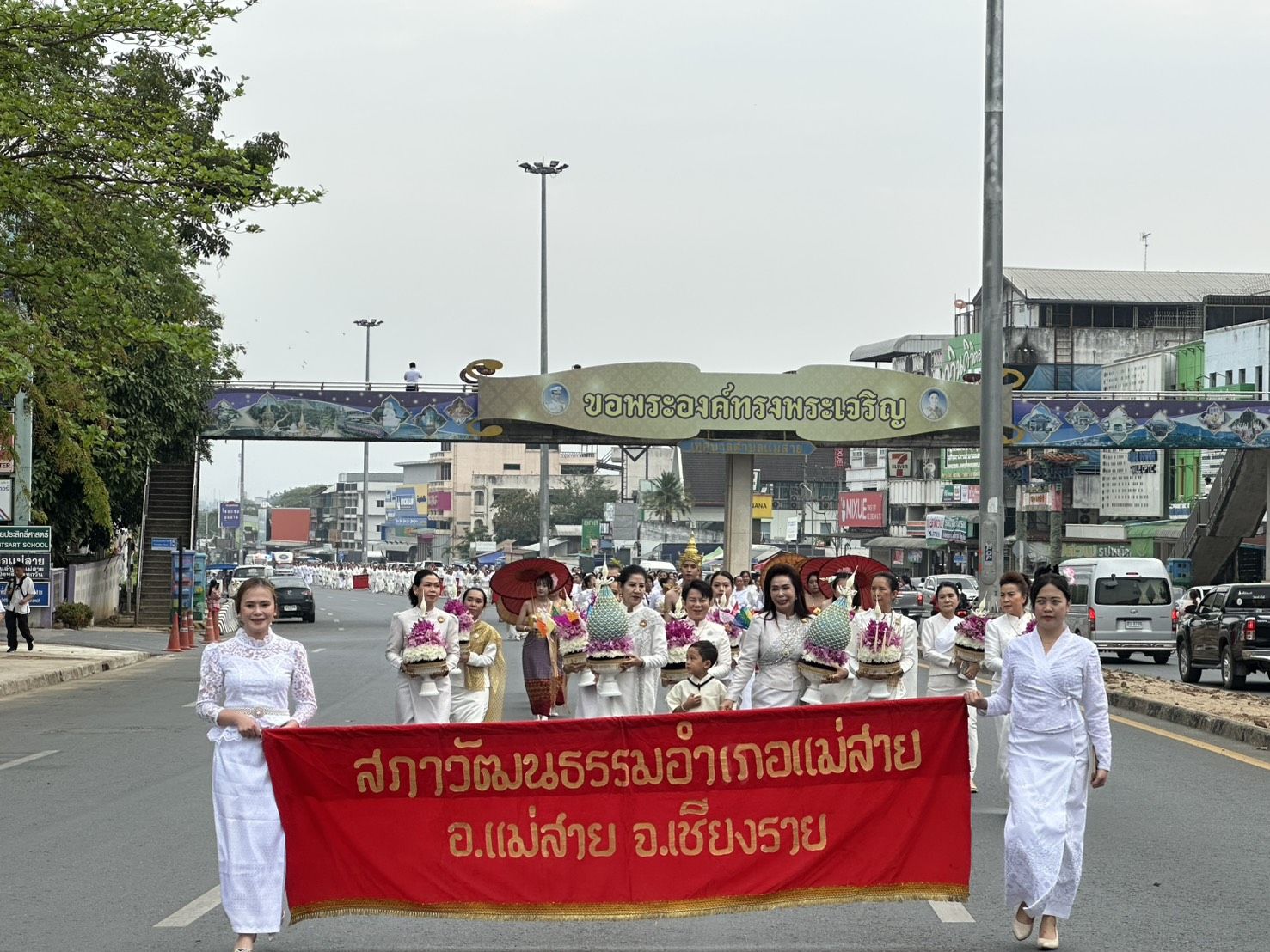 พร้อมด้วย นายวรายุทธ ค่อมบุญ นายอำเภอแม่สาย พ.ต.อ. จิรภาส ศักดิ์สูง ผกก.สภ.แม่สาย หัวหน้าหน่วยงานข้าราชการอำเภอแม่สาย หน่วยงานภาครัฐภาคเอกชน องค์กรปกครองส่วนท้องถิ่น ชมรมกำนันผู้ใหญ่บ้านแม่สาย วัฒนธรรมอำเภอแม่สาย พีน้องประชาชนในพื้นที่ อ.แม่สาย กลุ่มชาติพันธุ์แม่สาย เข้าร่วมพิธีบวงสรวงพระเจ้าพรหมมหาราช และในพิธีได้มีการการแสดงฟ้อนรำถวายของกลุ่มสตรีทั้ง 8 ตำบล จำนวนถึง 1105 คน