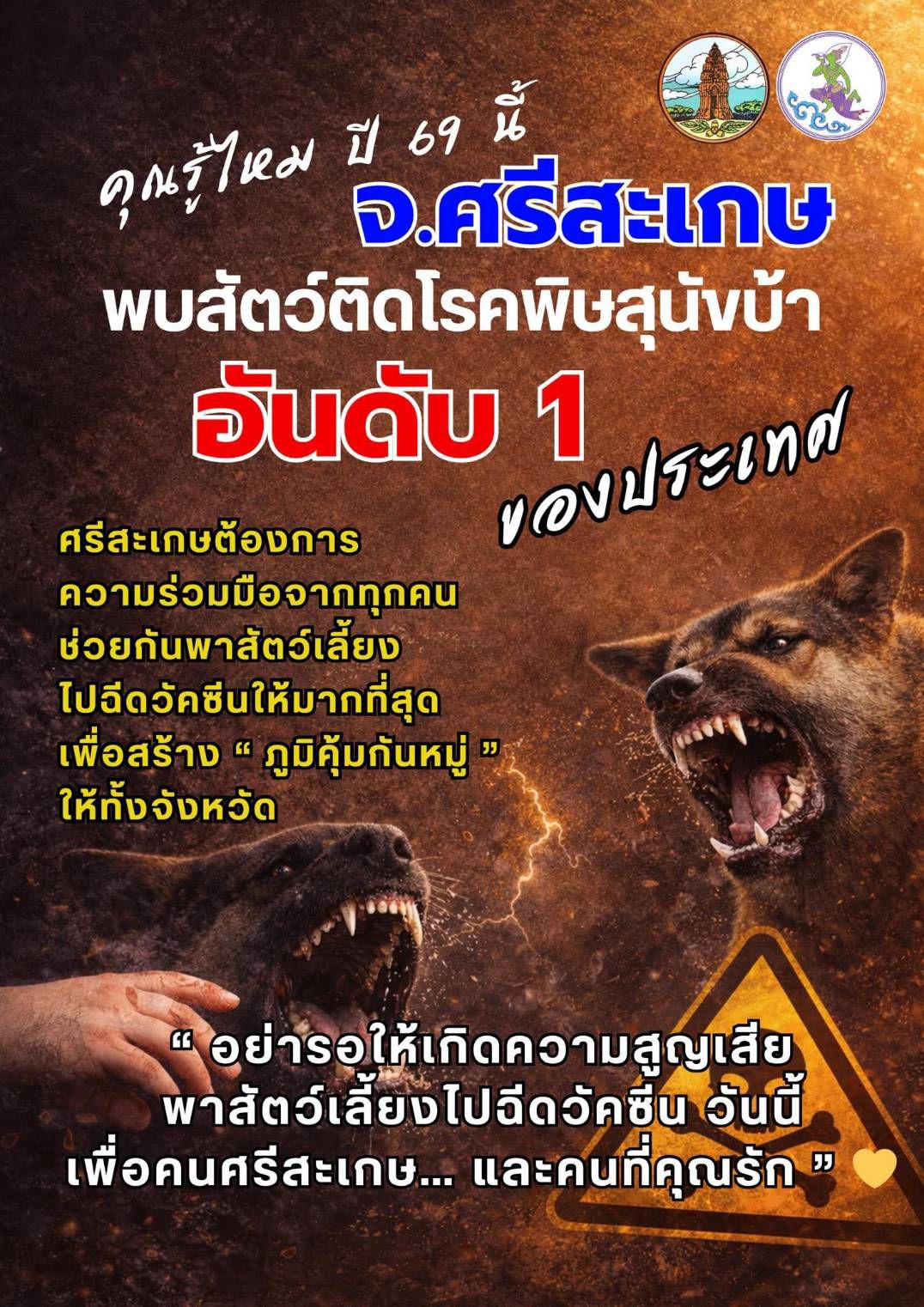 ผู้ว่าฯศรีสะเกษ เรียกประชุมด่วน! หลังพบสัตว์ติดโรคพิษสุนัขบ้าระบาดหนักใน 6 อำเภอ เตือน! ภัยร้ายใกล้ตัว แค่ถูกกัด ข่วน เลีย ก็เสี่ยงตาย แนะวิธีป้องกัน
