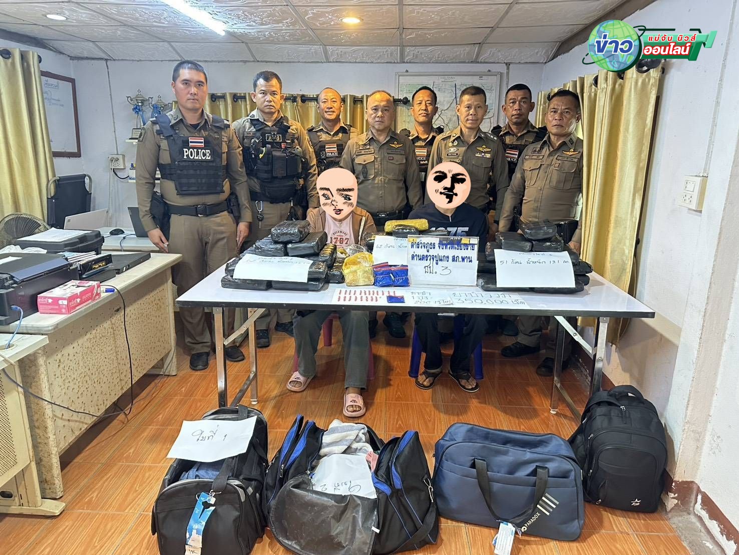 ตำรวจ สภ.พาน สกัดจับสองผู้ต้องหาคาด่านปูแกง พบซุกยาบ้ากว่า 3.5 แสนเม็ด ใส่กระเป๋าเดินทางอำพรางใต้ท้องรถทัวร์สายเชียงราย-กรุงเทพฯ หวังตบตาเจ้าหน้าที่