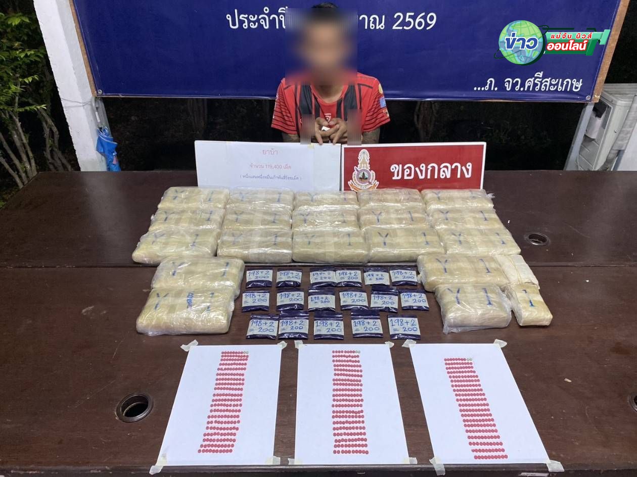 ศรีสะเกษ – ผู้ว่าฯ สั่งลุย บุกจับเอเย่นต์หนุ่มวัย 24 ปี รับจ้างส่งยาบ้า 2 แสนเม็ด แลกเงิน 5 หมื่น ถูกรวบเสียก่อนได้รับค่าจ้าง