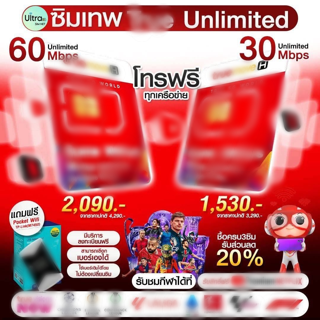 – โปรแรงเกินจริง: อ้างแพ็กเกจเน็ตไม่อั้น โทรฟรีทุกค่าย แถม Pocket WiFi หรือดูสตรีมมิ่งฟรี 1 ปี ในราคาหลักพันต้นๆ